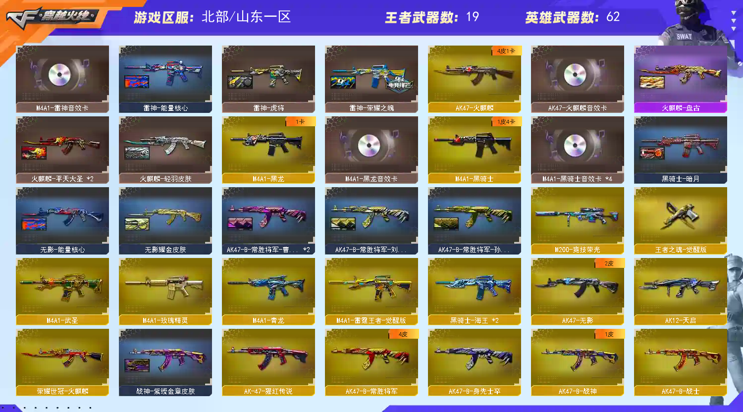 • 游戏区服:穿越火线 / 北部 / 山东一区