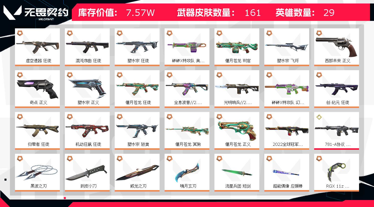 • 皮肤资产价值: 75700