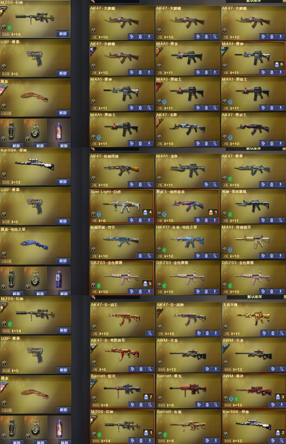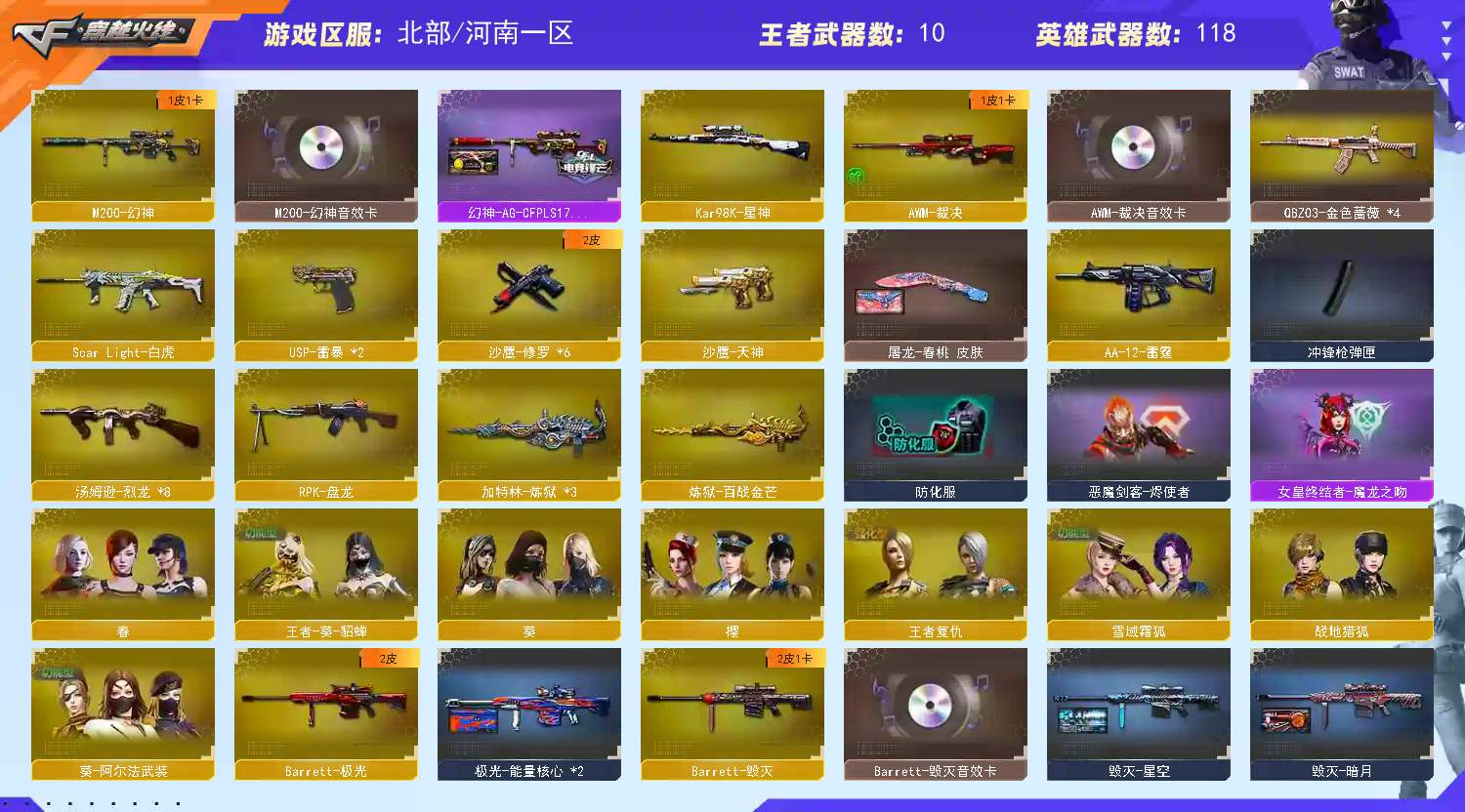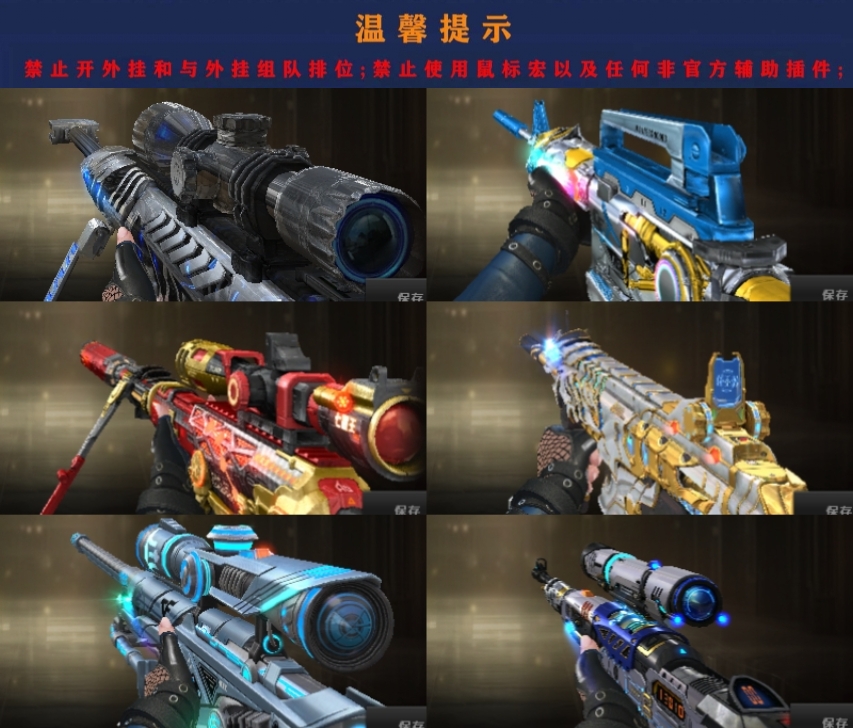 裁决三件套,幻神三件套,星神白虎,2雷暴USP,6张音效卡,四防角色,满雷,禁止外挂