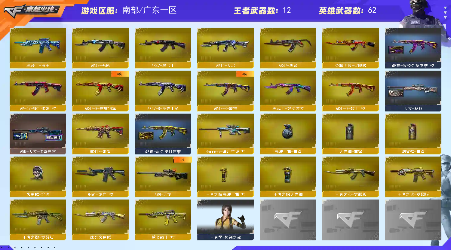 • 游戏区服:穿越火线 / 南部 / 广东一区