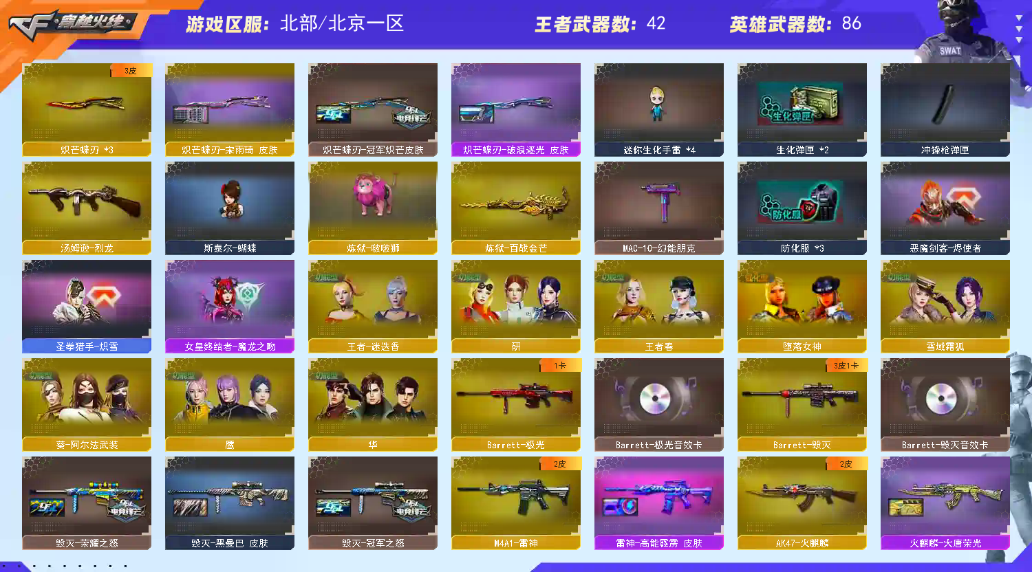 • 游戏区服:穿越火线 / 北部 / 北京一区
