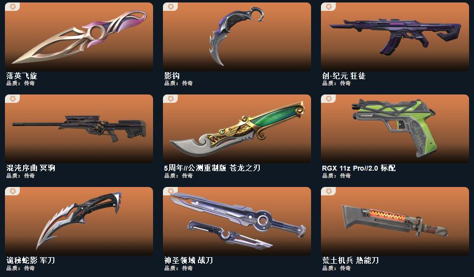 wegame无畏契约★ 枪皮数量65,阿特拉斯指挥部 标配,掠影//2.0 鬼魅,阿特拉斯指挥部 甩棍,影钩,5周年//公测重制版 苍龙之刃,诡秘蛇影 军刀,神圣领域 战刀,落英飞旋,荒土机兵 热能刀,掠影//2.0 奥丁,悠闲猫生 幻影,掠影//2.0 幻影