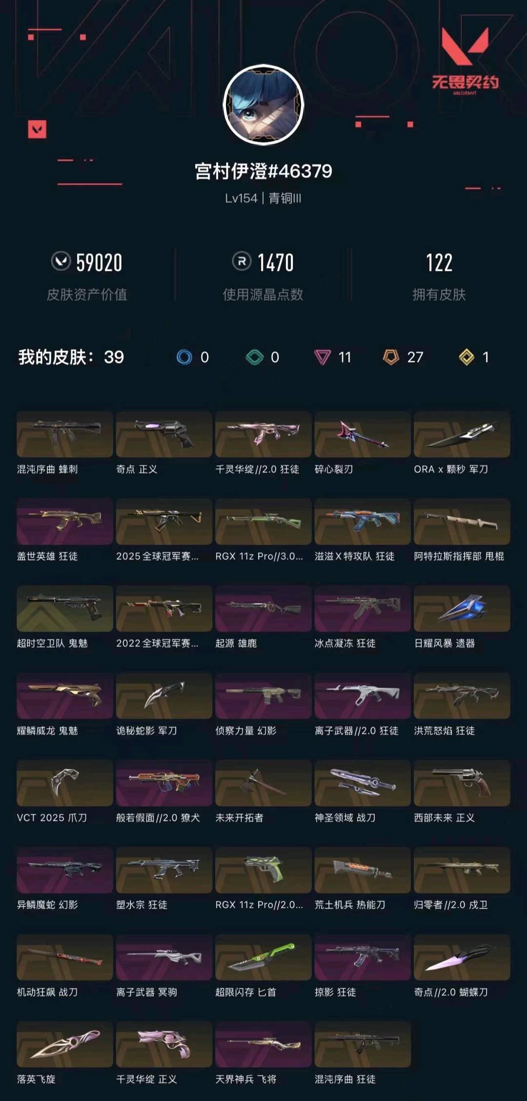 • 游戏区服:无畏契约-wegame / wegame / wegame