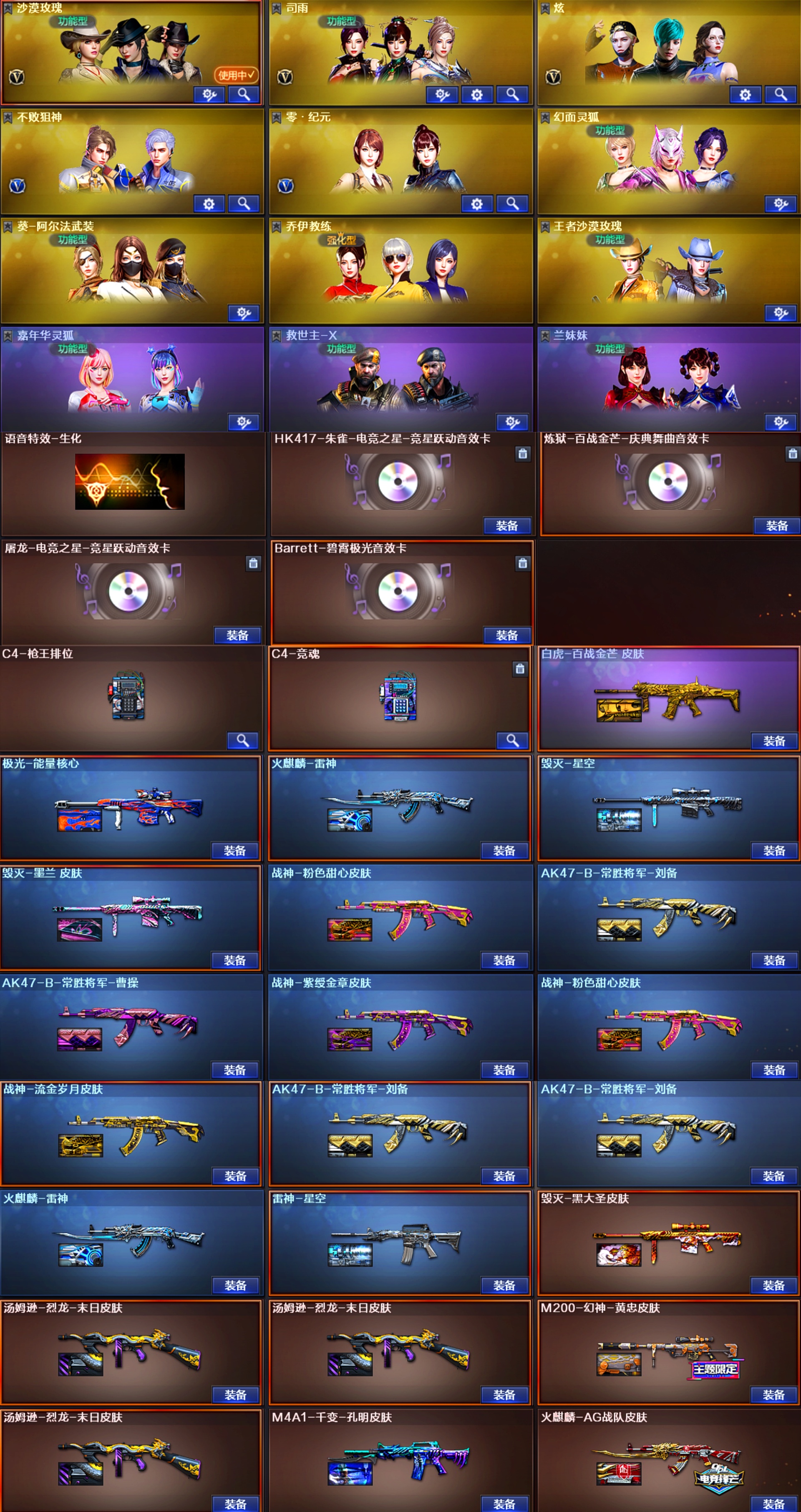 幻神白虎爆破生化挑战三模账号5黑骑士挑战168甄选套装6烈龙6盘龙百V账号;沙漠玫瑰,王者沙漠玫瑰,RPK-盘龙,M200-幻神,Scar Light-白虎,