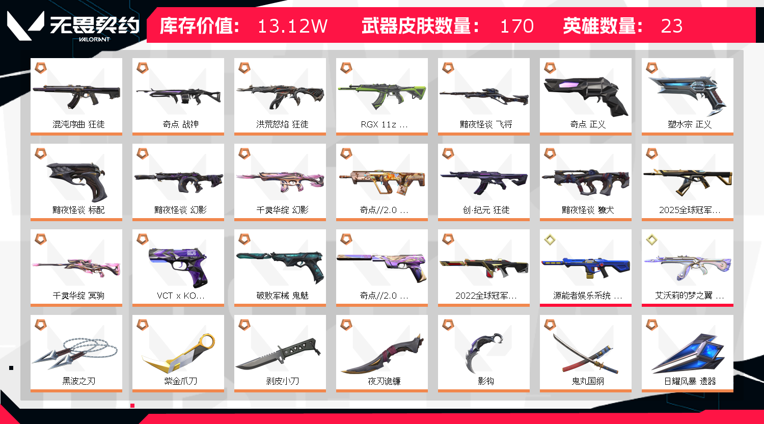 • 皮肤资产价值: 131160