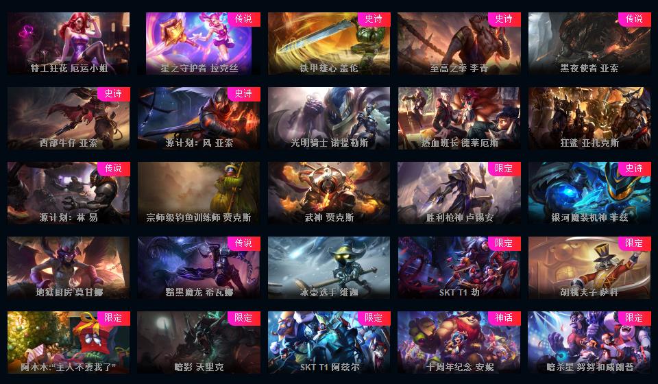 950皮肤◆黄蓝龙虾◆粉色萝莉◆摄魂VN◆海克斯恐惧新星◆斩星魔剑破空枪骑生化领主钢铁烈阳lol星之