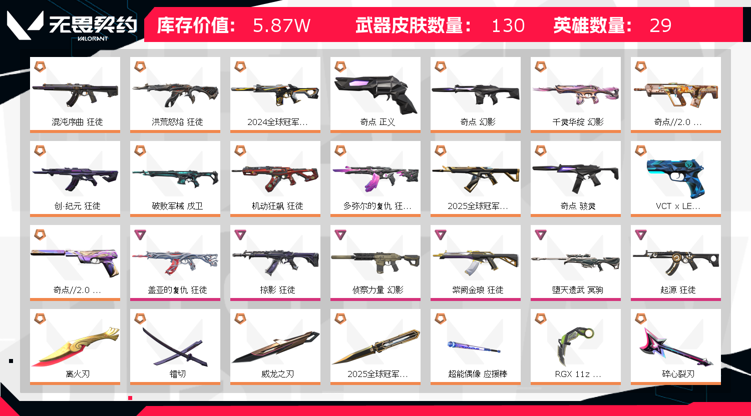 首页 > 租号大厅 > 无畏契约-wegame > wegame/wegame > 5.8w库存/离火刃/2024-2025冠军赛套/怜悯之刃/奇点全套/镭切/千灵华绽 幻影/质量