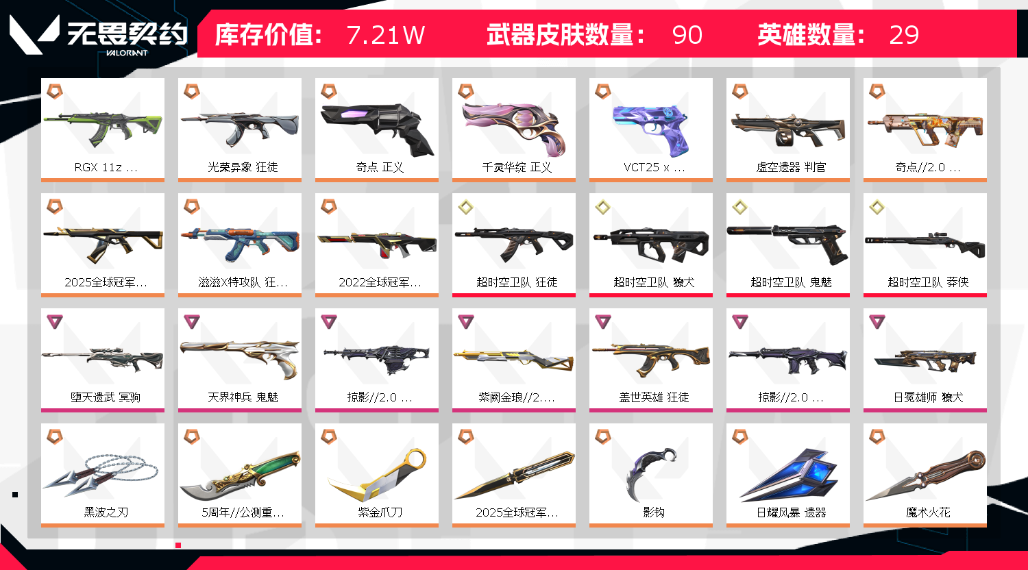 首页 > 租号大厅 > 无畏契约-wegame > wegame/wegame > 7.3w超时空套三棱25冠军22冠军套掠影2.0套显卡光荣滋滋雄狮狂徒奇点莲花正义黑波电工钳紫金爪苍