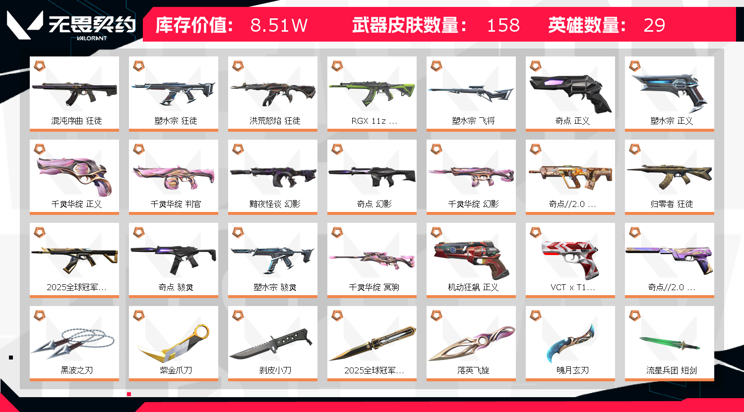 • 皮肤资产价值: 85120