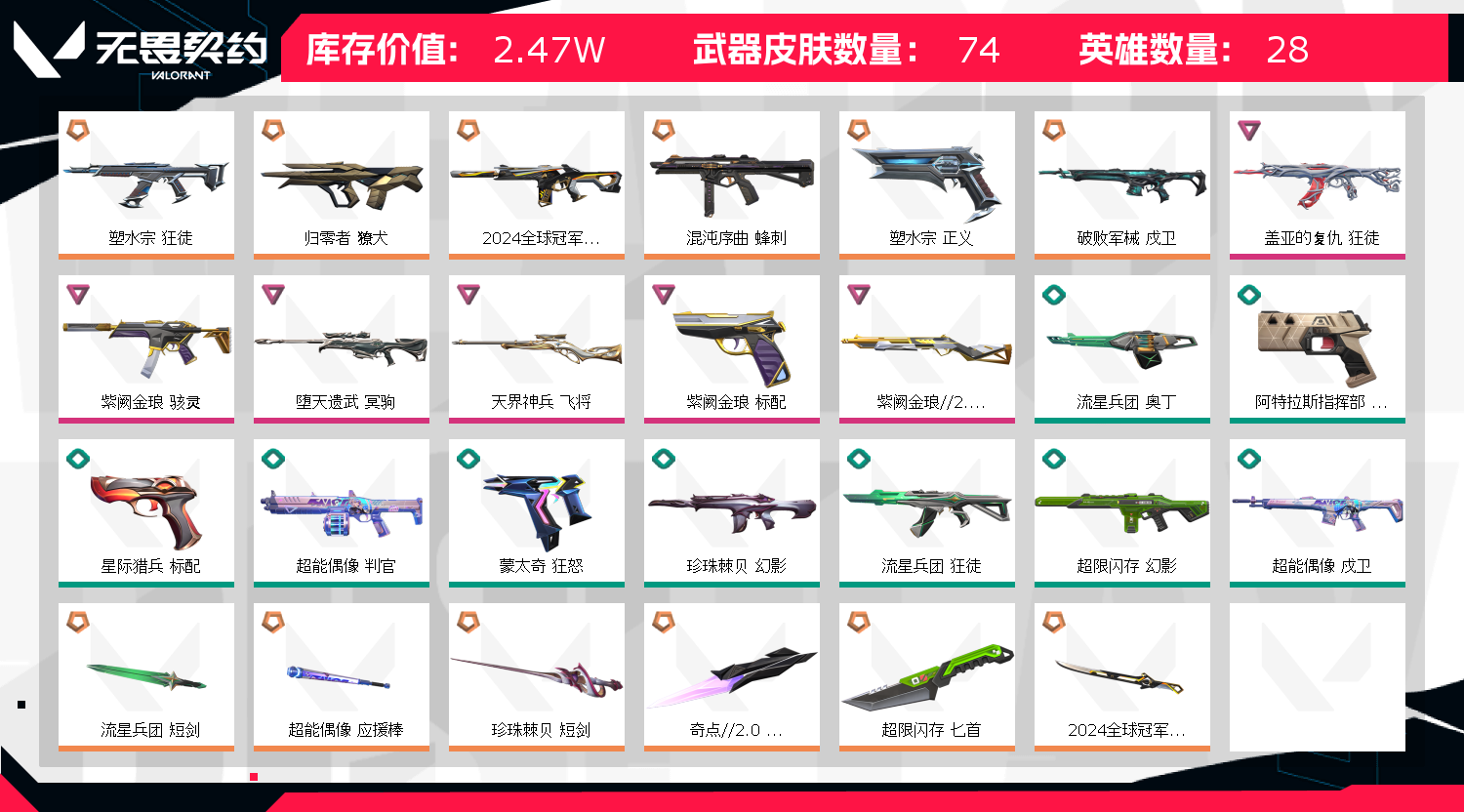 • 皮肤资产价值: 24740