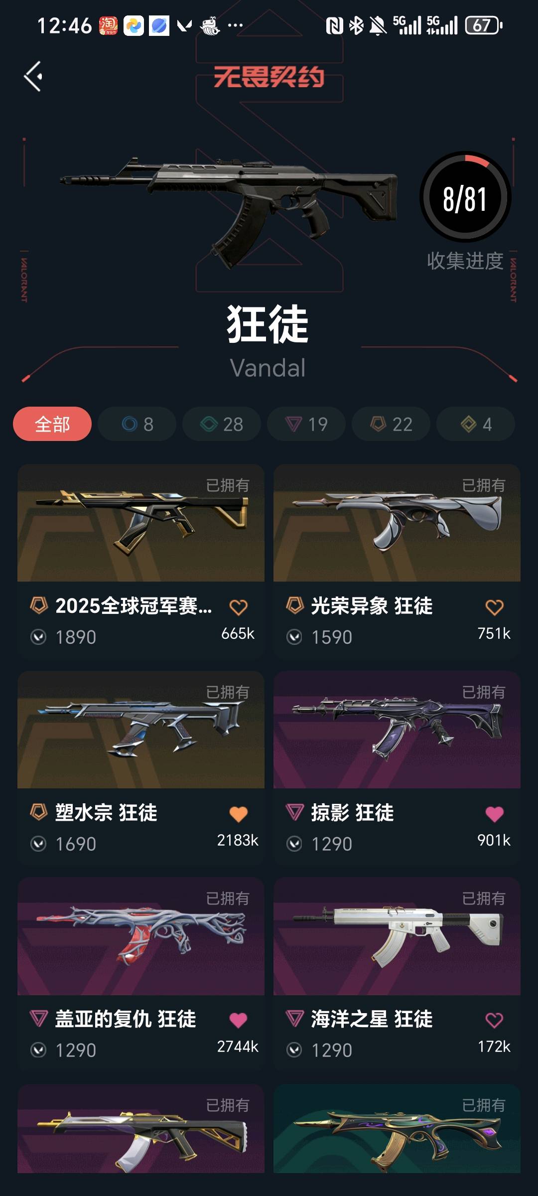 首页 > 租号大厅 > 无畏契约-wegame > wegame/wegame > 全英雄,ak有盖亚,塑水宗,紫金等六把ak,幻影有般若假面,常用武器都有皮肤