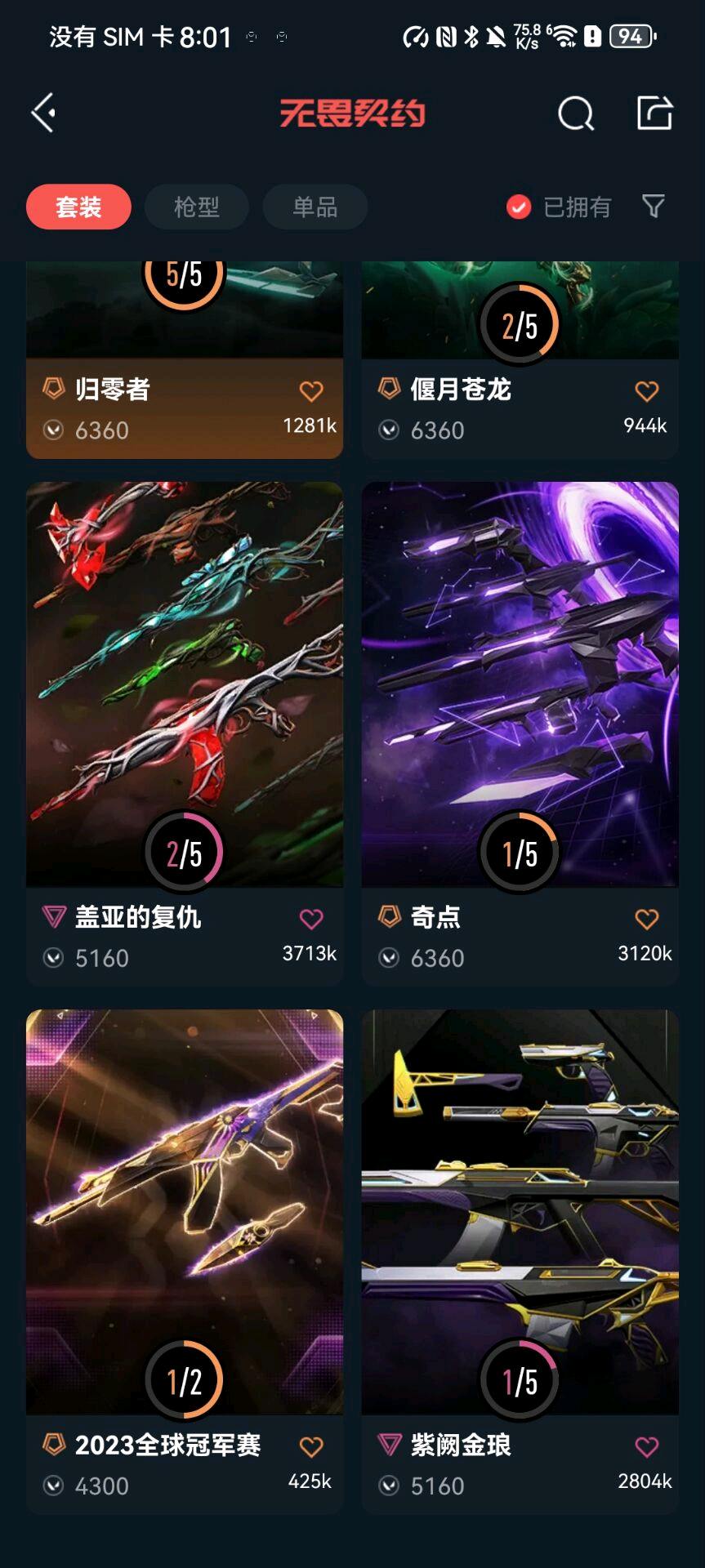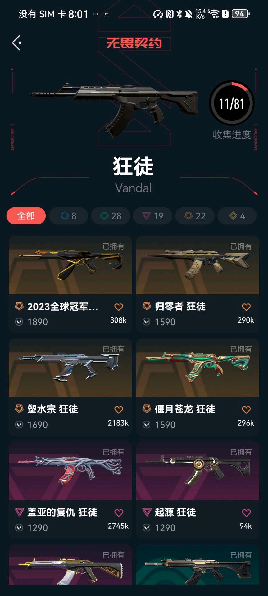 基本常用枪都有多套皮肤,卡面136,喷漆140,挂饰98---不要恶意挂机,恶意分号直接拉黑处理;奇点 战神,起源 雄鹿,归零者 獠犬,盖亚的复仇 狂徒,紫阙金琅 狂徒,塑水宗 狂徒,2023全球冠军赛 狂徒,