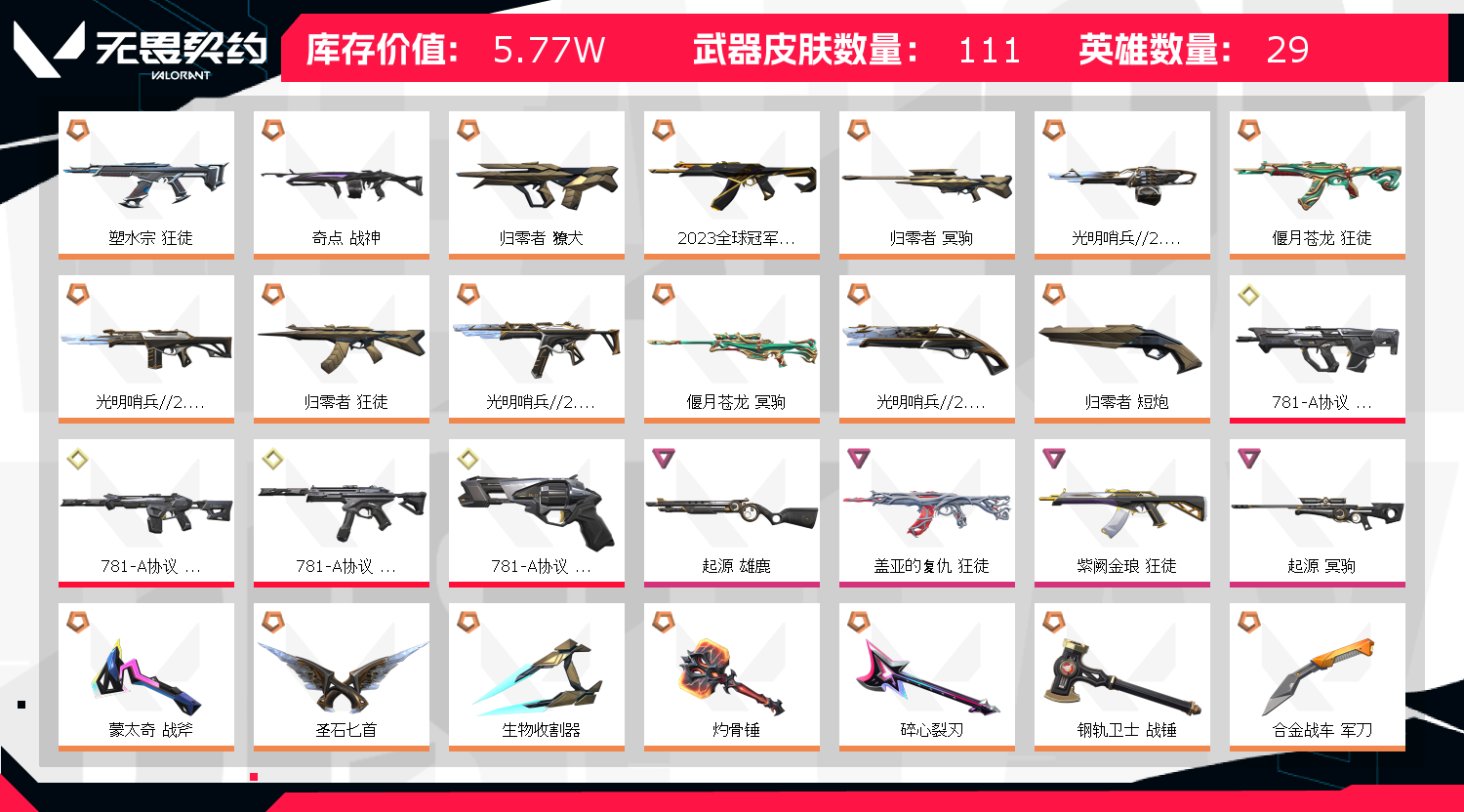 • 皮肤资产价值: 57710
