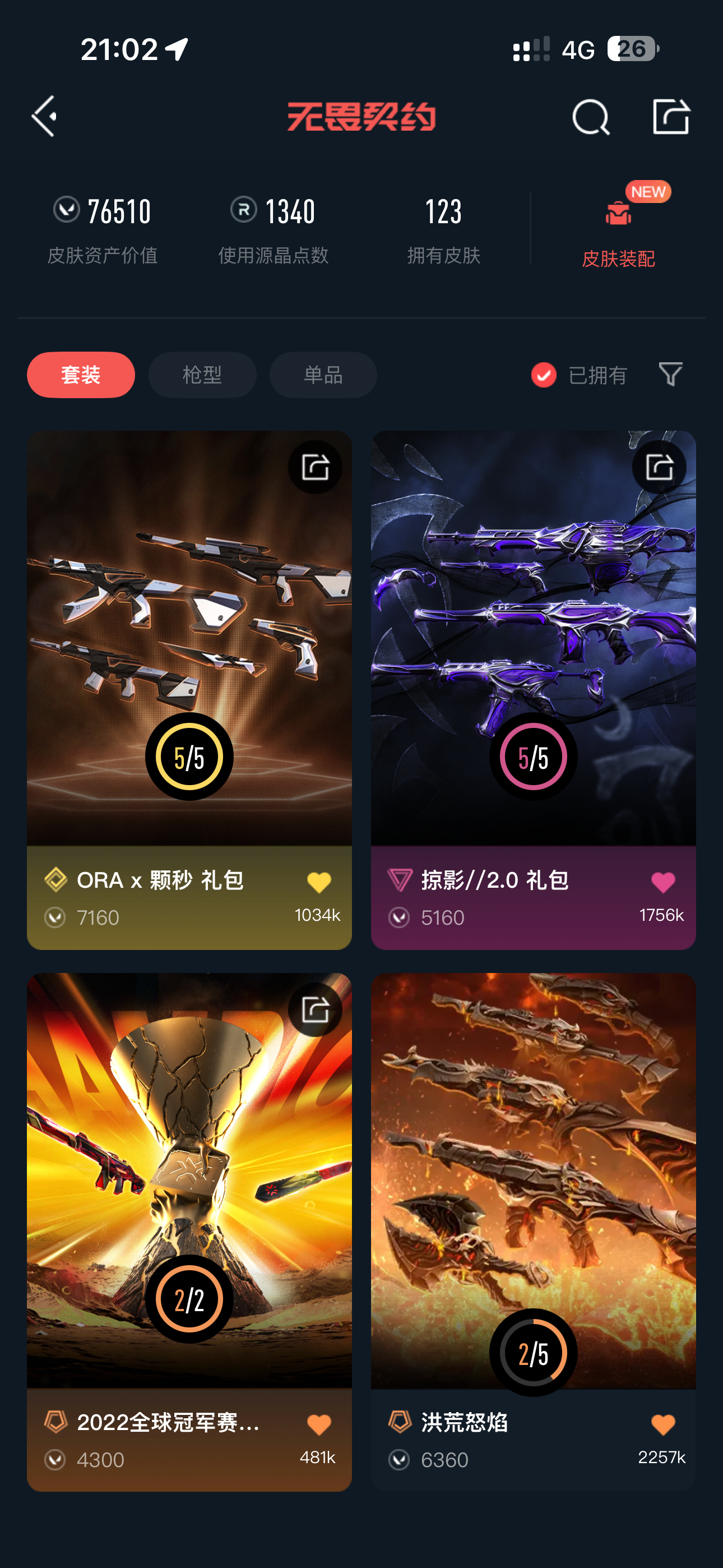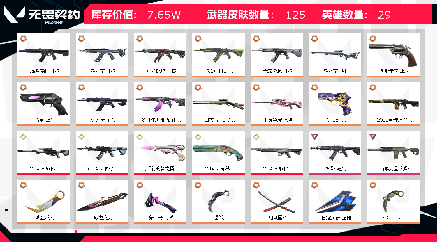 • 皮肤资产价值: 76510