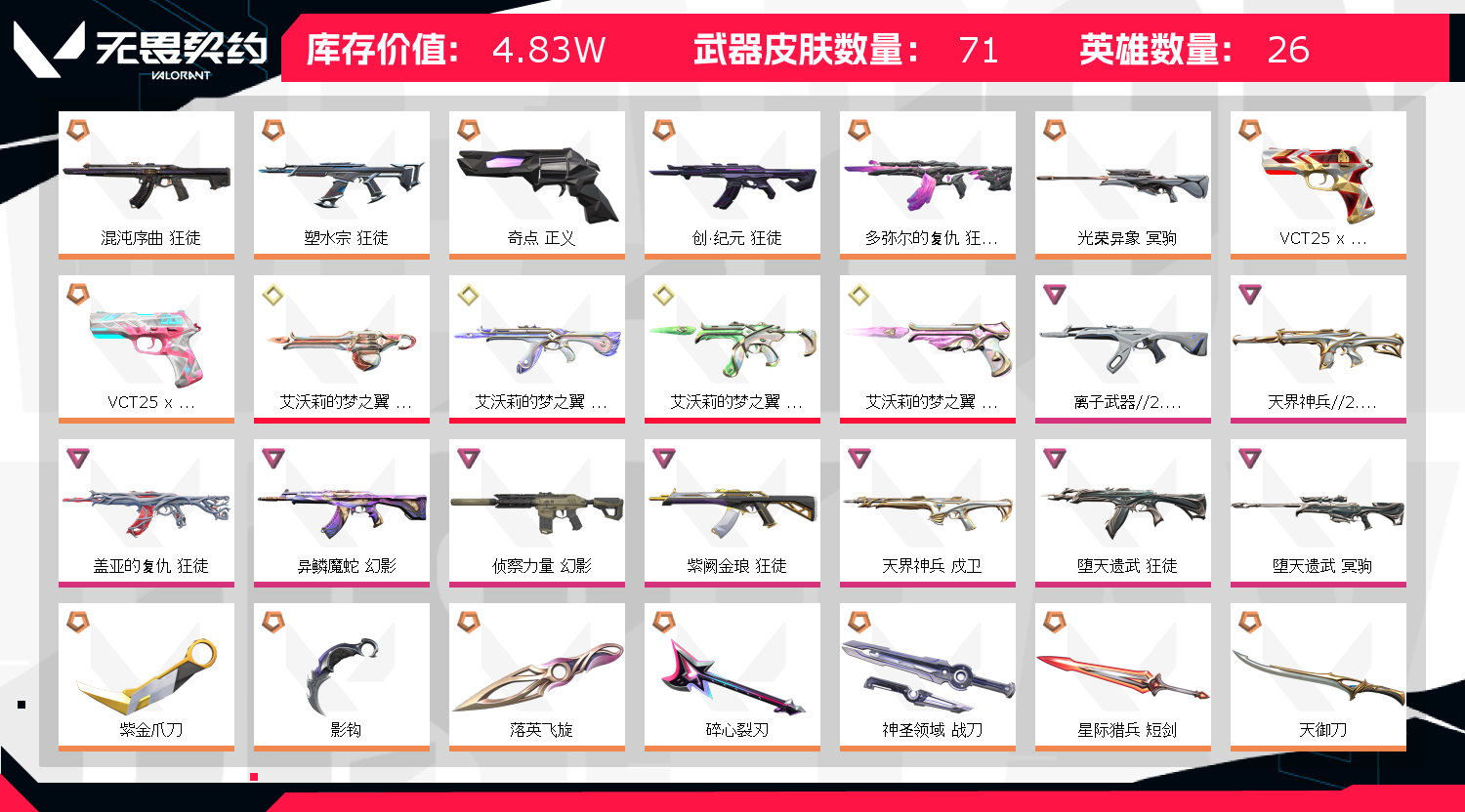 • 皮肤资产价值: 48280
