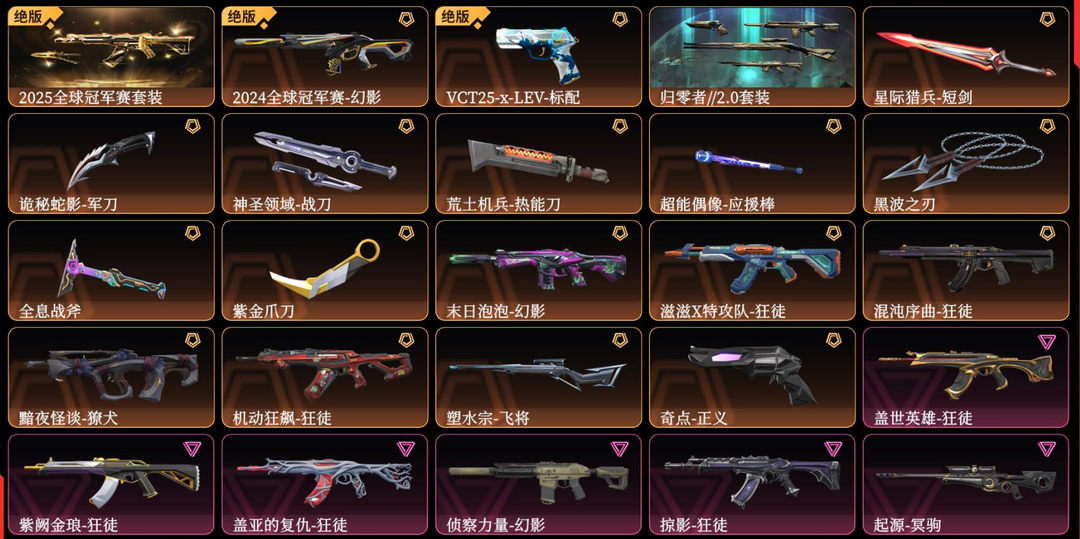 可排位✨24冠军侦察泡泡幻影✨25冠军归零者2.0套✨黑波之刃紫金爪刀✨混沌滋滋盖亚紫金机动狂徒✨