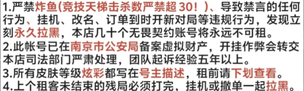 • 租号限制:起租时间2小时,租号0次及以上才可租用此号