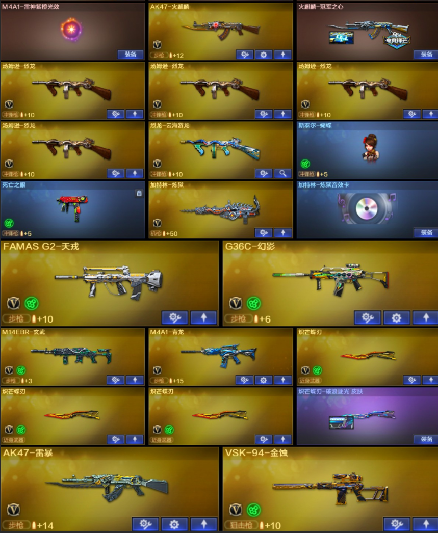 传说灵眸/质量7副手/幻神4皮三件套/星神双皮三件套/裁决3皮三件套/G36幻影法玛斯5烈蝴蝶3炽芒