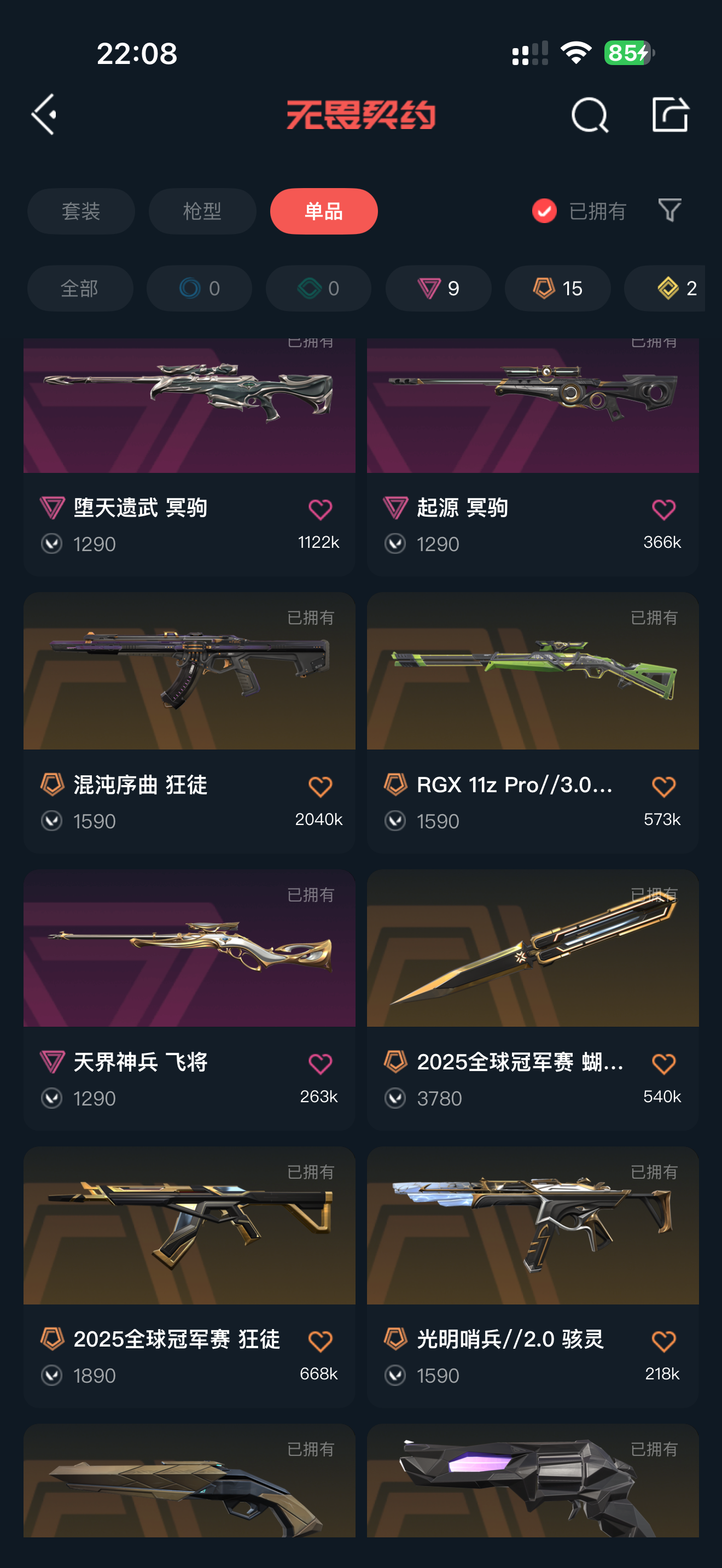 弃王/起源大狙 归零短炮 紫金戍卫 光明哨兵骇灵 混沌蜂刺 都是神中神;剥皮小刀,异鳞魔蛇 幻影,侦察力量 幻影,洪荒怒焰 幻影,混沌序曲 狂徒,光荣异象 狂徒,离子武器//2.0 狂徒,