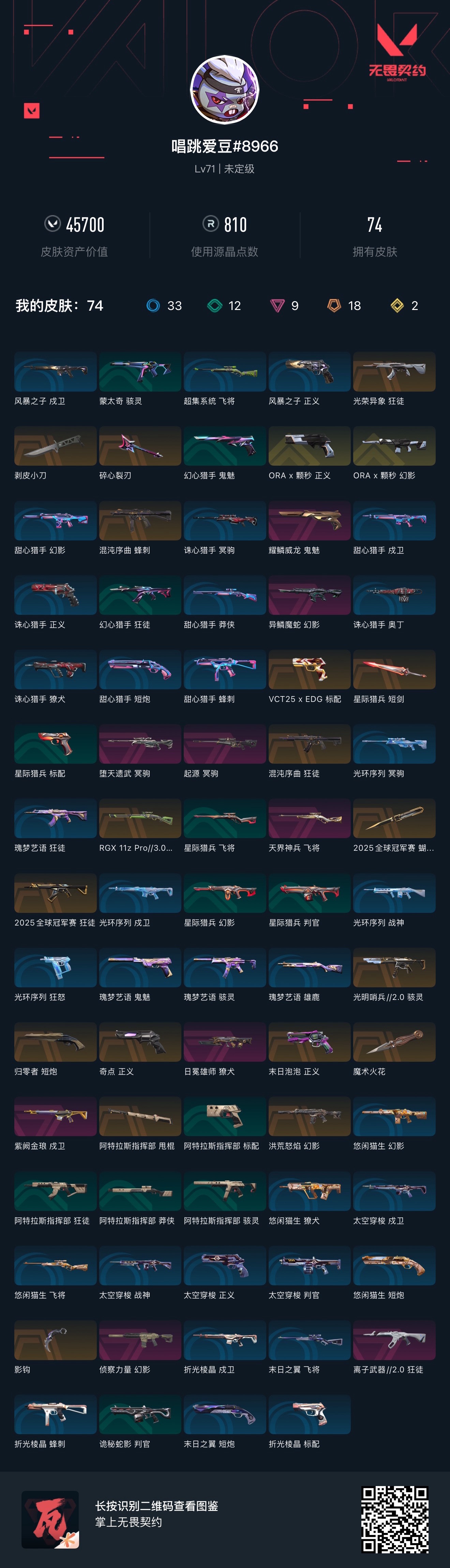 • 皮肤资产价值: 45700