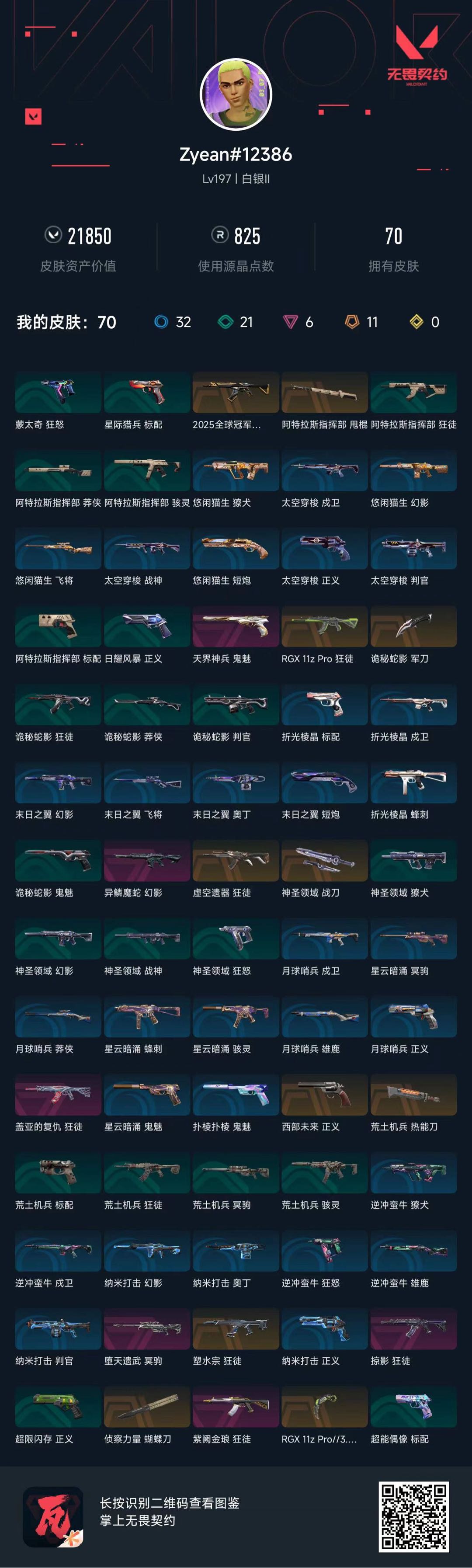 • 皮肤资产价值: 21850