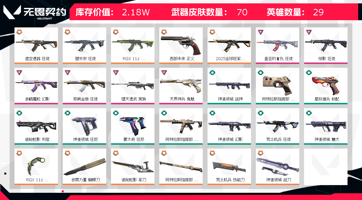 首页 > 租号大厅 > 无畏契约-wegame > wegame/wegame > 25冠🔥盖亚塑水显卡🔥虚空掠夺紫金蛇年幻影🔥天界鬼魅西部正义🔥弃王狙显卡爪