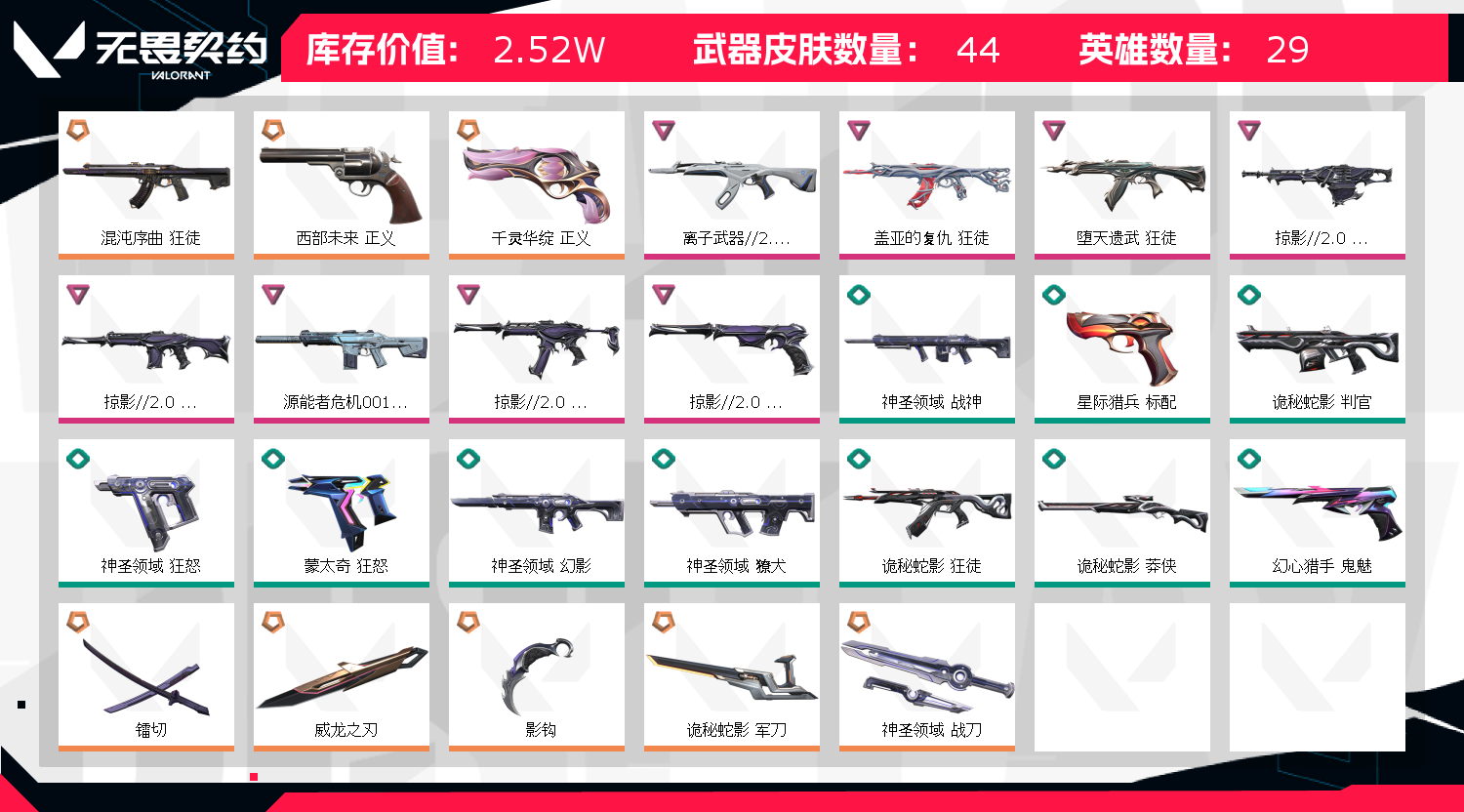• 皮肤资产价值: 25230