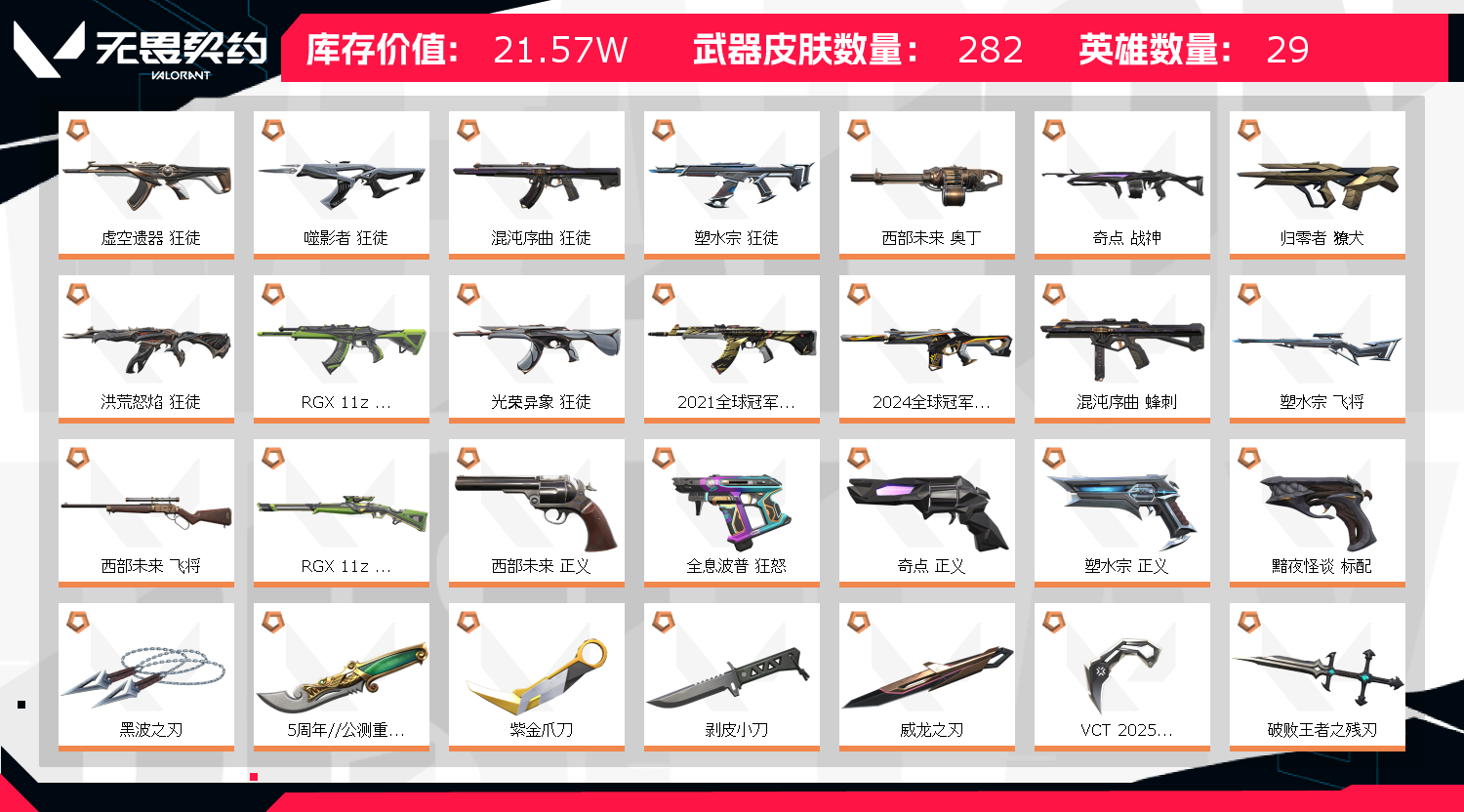 首页 > 租号大厅 > 无畏契约-wegame > wegame/wegame > 冻结秒解⚡22w库21冠军套24冠军22冠军猫猫套塑水套噬影者套末日千灵西部归零者破败VCT爪