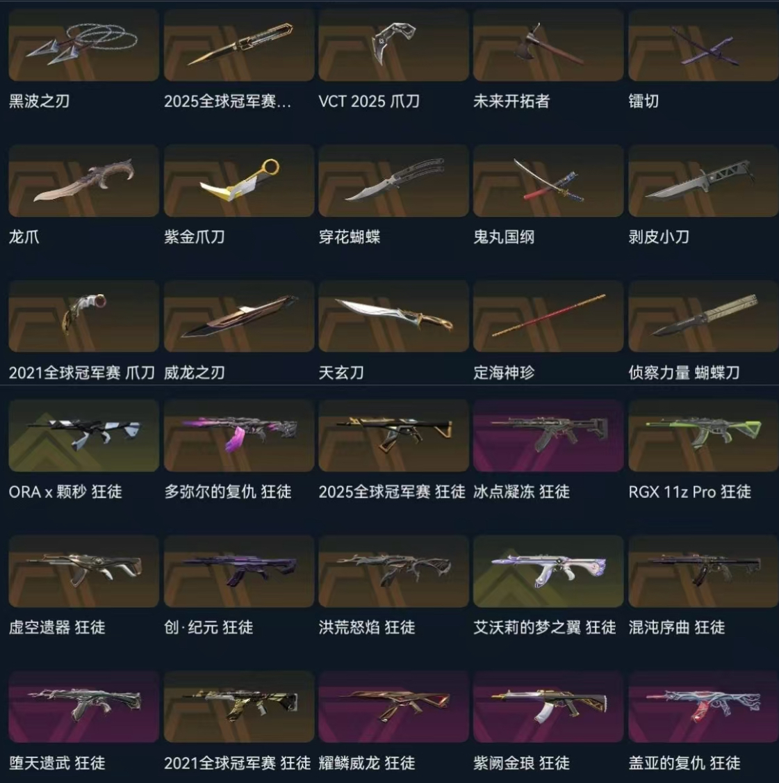 首页 > 租号大厅 > 无畏契约-wegame > wegame/wegame > 2125冠军神话挂坠🔥黑波之刃紫金爪颗秒ak幻影创纪元套边陲套VCT爪刀多弥尔显卡盖亚紫金狂徒