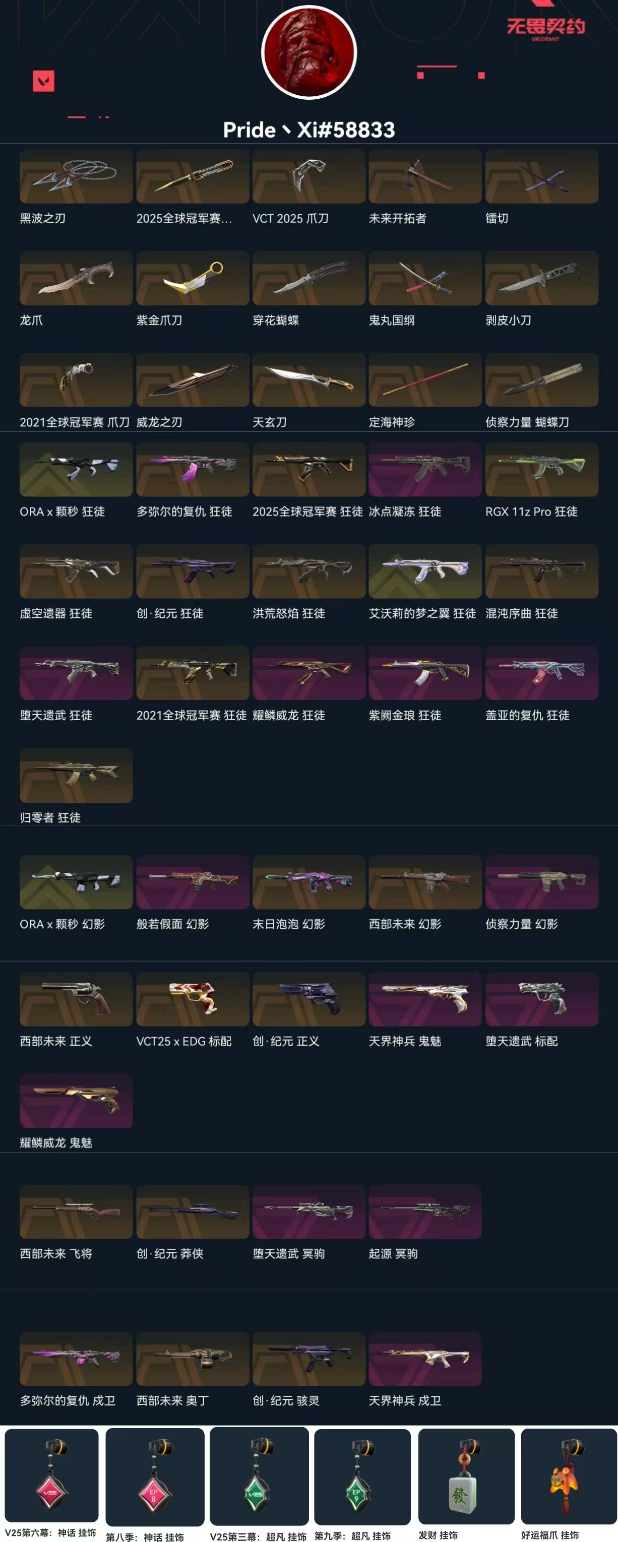 2125冠军神话挂坠🔥黑波之刃紫金爪颗秒ak幻影创纪元套边陲套VCT爪刀多弥尔显卡盖亚紫金狂徒