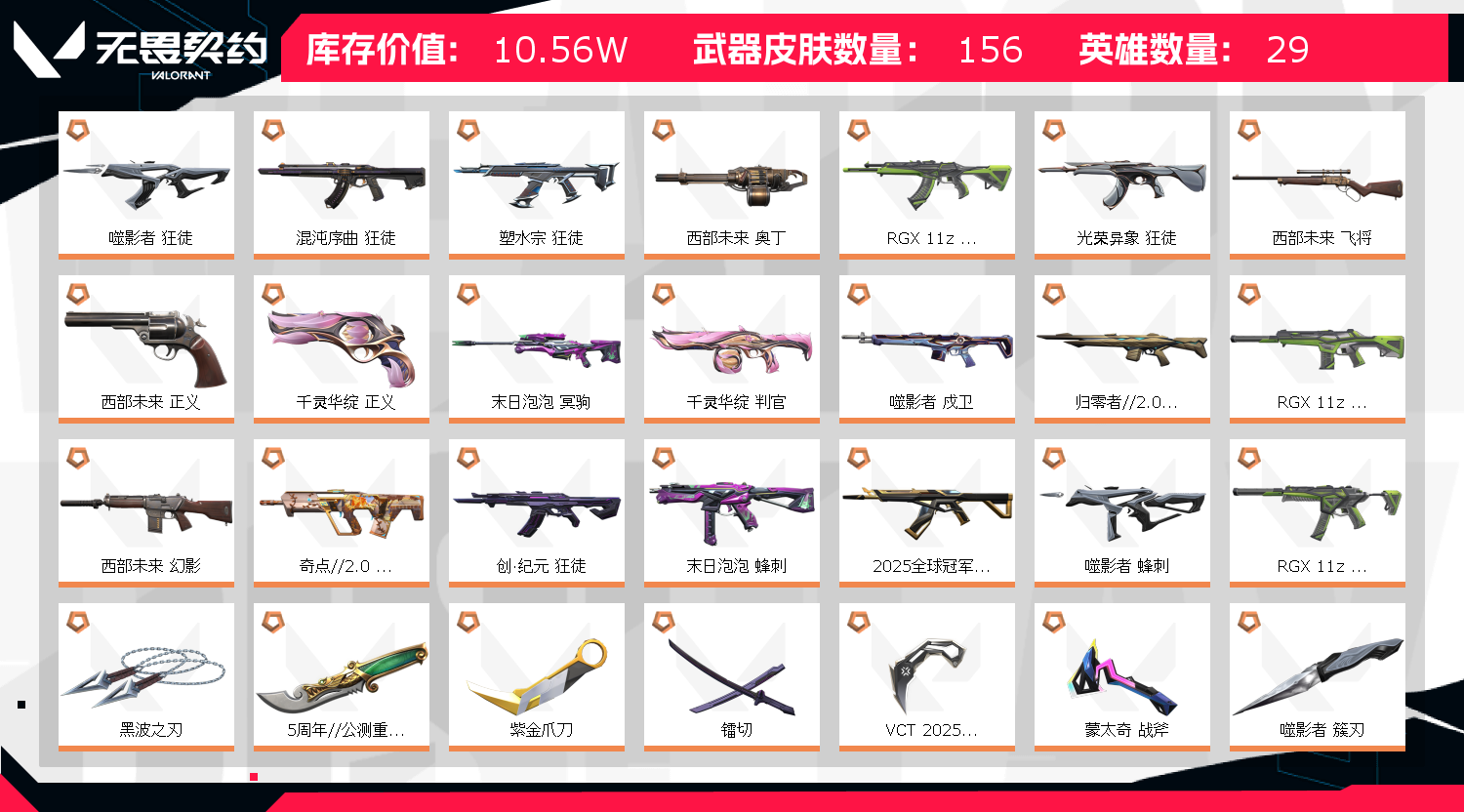 首页 > 租号大厅 > 无畏契约-wegame > wegame/wegame > 10w+库存✨绝版25冠军狂徒✨22冠军幻影✨黑波✨苍龙✨泡泡一套✨西部正义 雷切