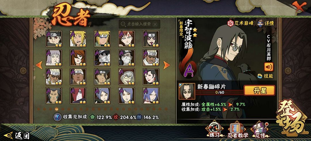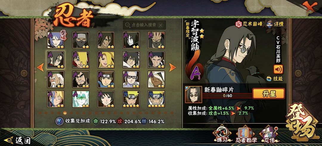 36s、54A、259忍,十尾带土,小胡子,无,新春鼬,新春水门,漂泊带土,泳装小南,忍战志乃,熊猫