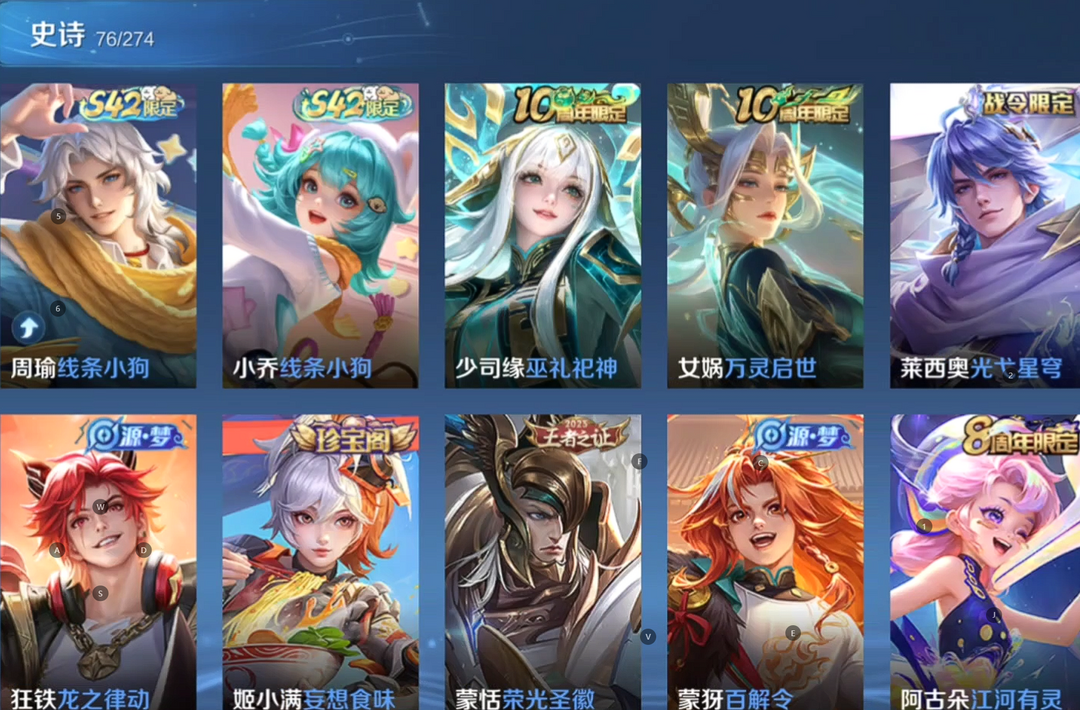 V10、550皮14水、吕布典藏-千魇归渊、云缨-神骥·越千峰、怪盗基德、伽罗星传说红枫、瑶典藏拾光映像、冥王哈迪斯、、龙年限定、齐天大圣