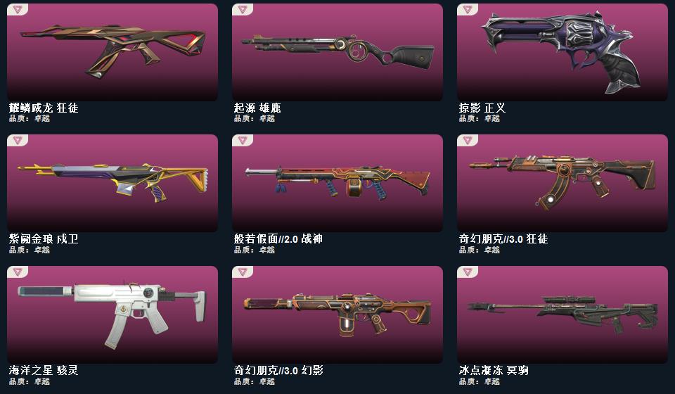 wegame无畏契约★武器皮肤数量:64,星际猎兵 短剑,2025全球冠军赛 蝴蝶刀,泡泡电锯,影刃,魔术火花,阿特拉斯指挥部 甩棍,影钩,奇点//2.0 蝴蝶刀,威龙之刃,光环序列 战神,光环序列 冥驹,紫阙金琅 戍卫,起源 雄鹿,幻心猎手 鬼魅,无限竞技 骇灵