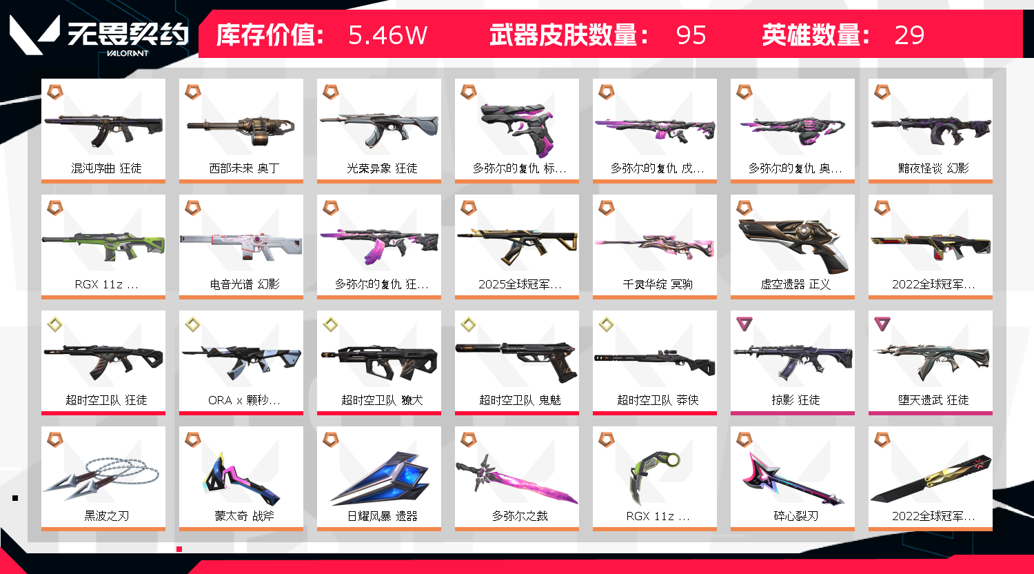 • 武器皮肤数量: 95