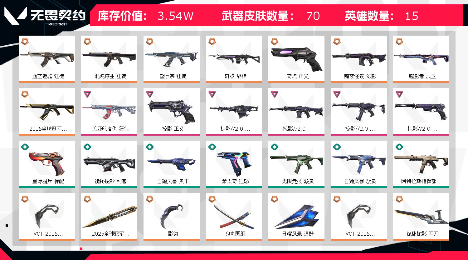 3w库存♈25冠军套掠夺2.0套丨盖亚混沌塑水宗虚空ak丨VCT爪刀奇点正义