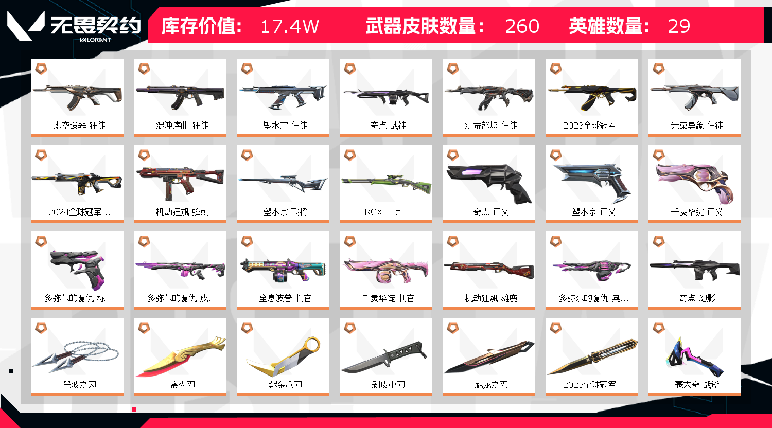 • 皮肤资产价值: 174025