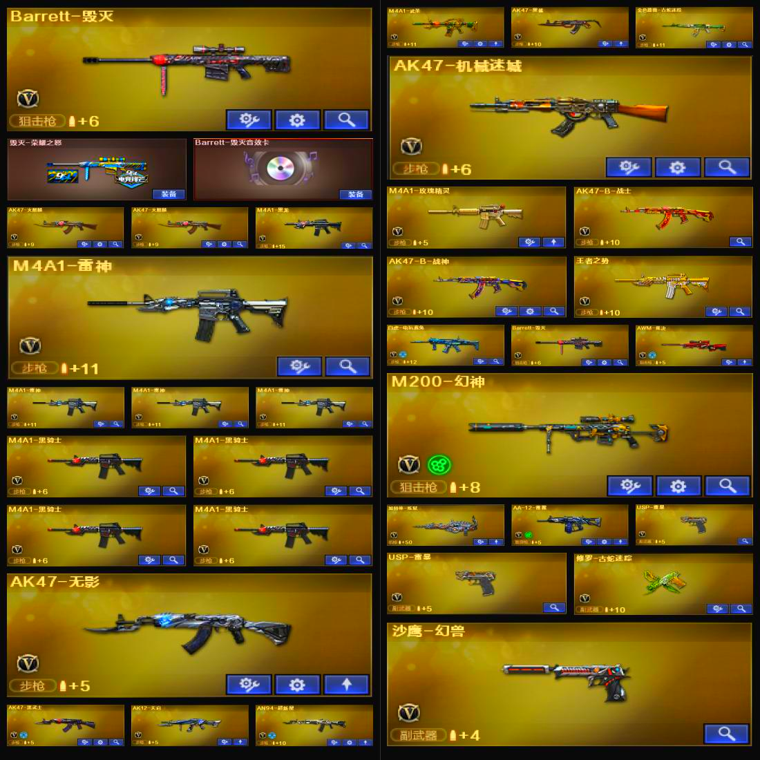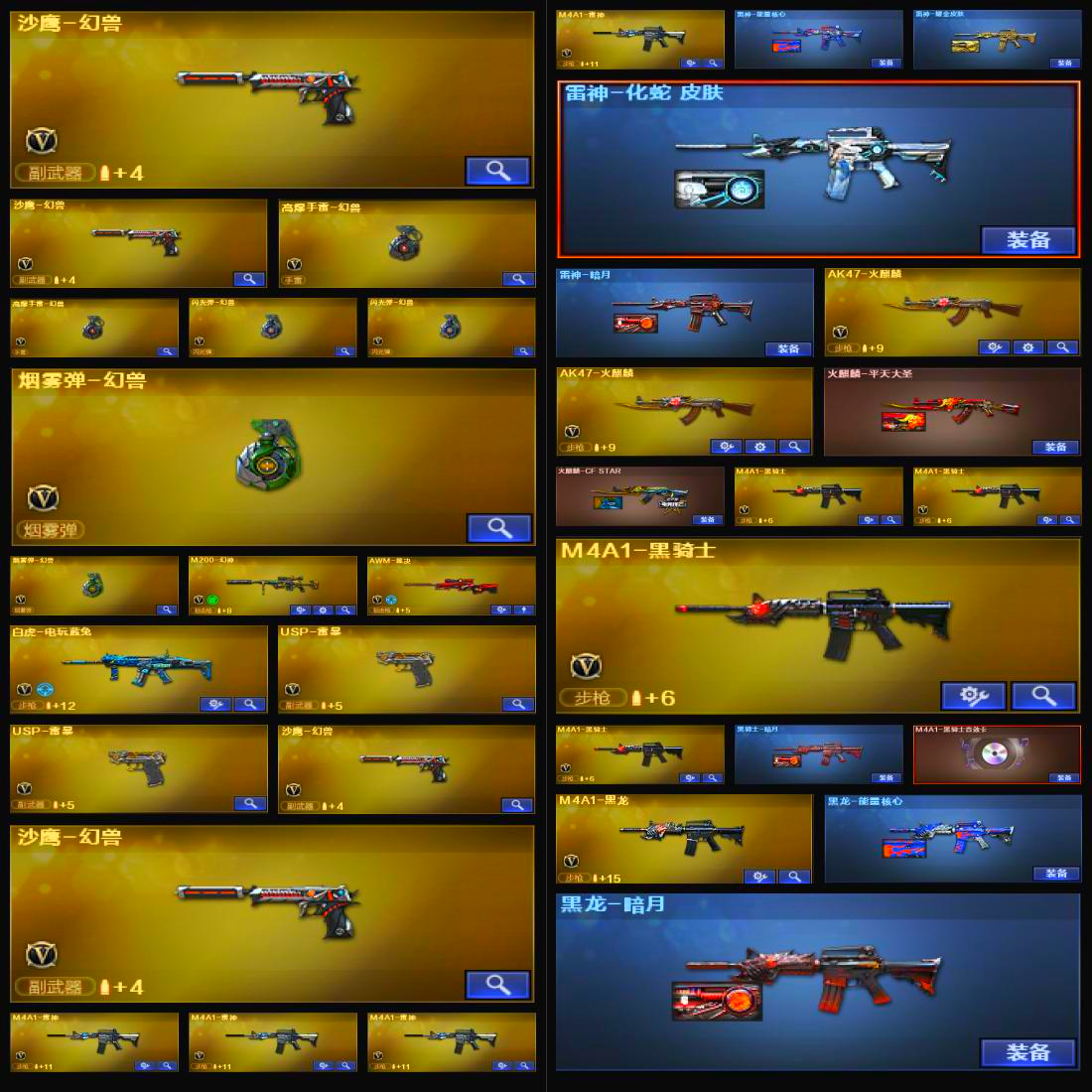 两套幻兽⭐幻神⭐两把usp雷暴⭐加利尔ACE-天袭⭐毁灭三件套⭐白虎-电玩蓝兔⭐黑骑士三件套⭐