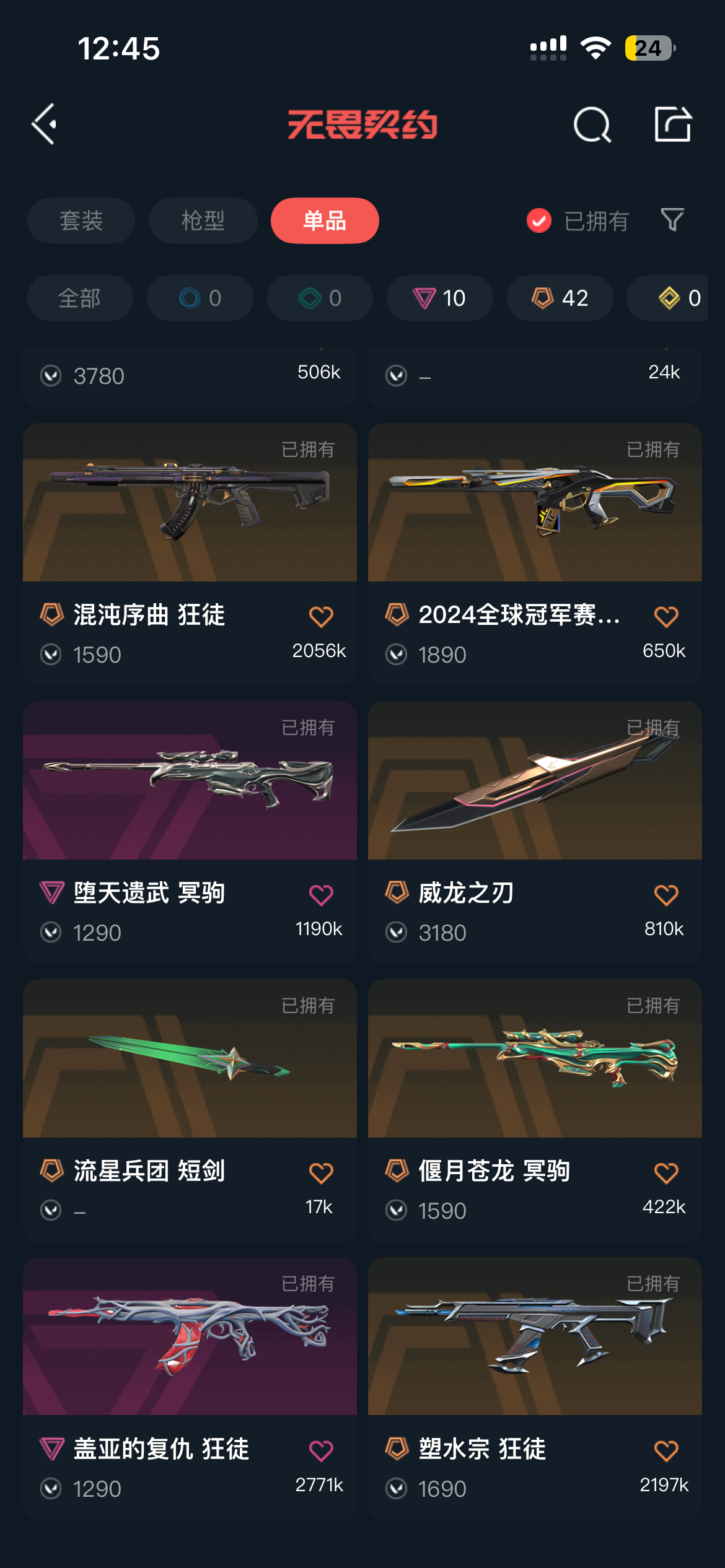 首页 > 租号大厅 > 无畏契约-wegame > wegame/wegame > (当前账号:铂金1)2025、2022、2024冠军套 显卡3.0套 奇点2.0 10刀皮