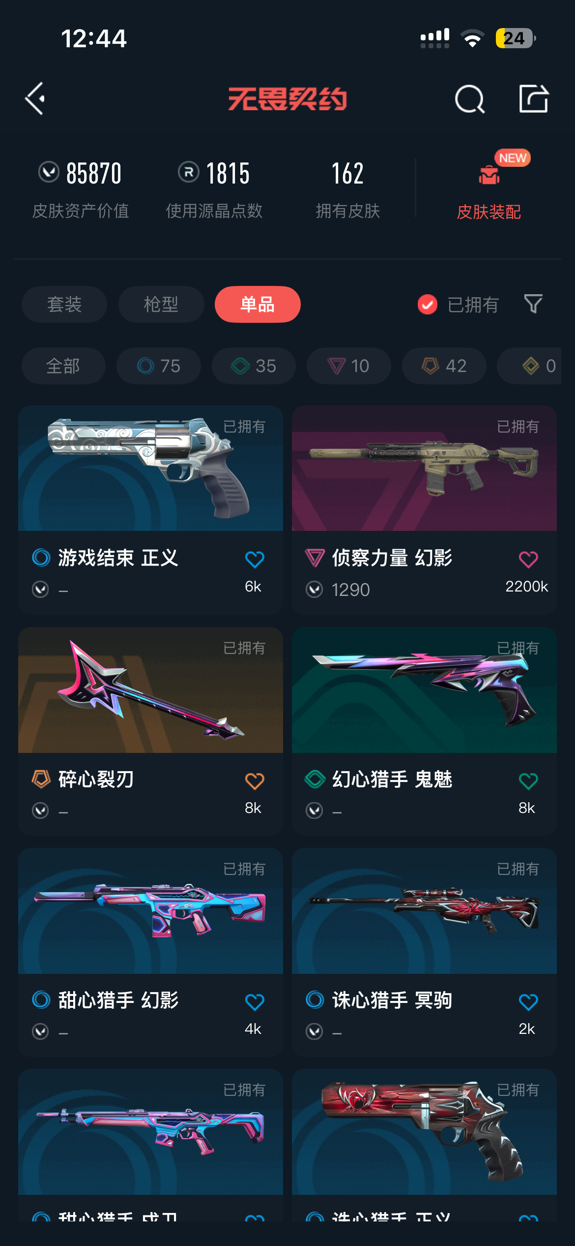 • 皮肤资产价值: 87460