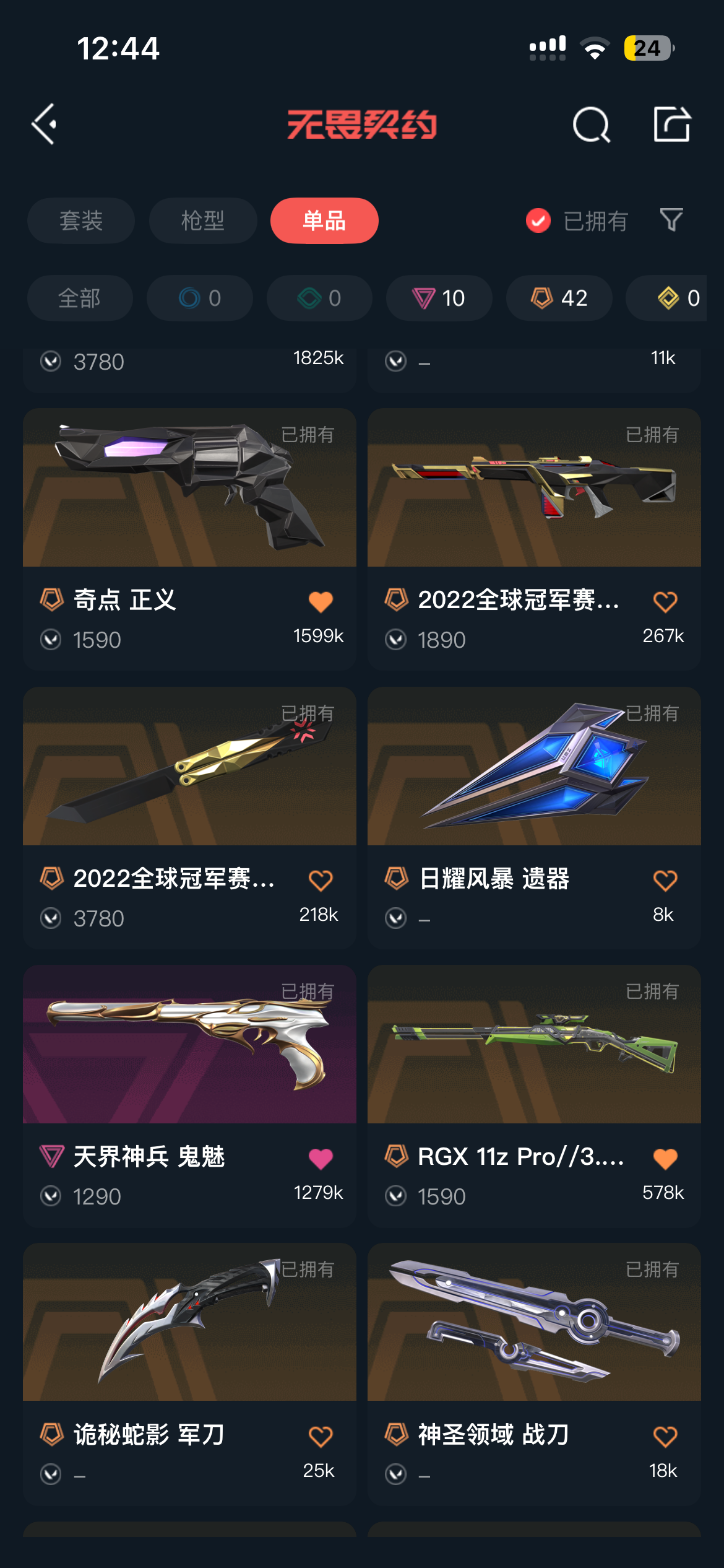 (当前账号:铂金1)2025、2022、2024冠军套 显卡3.0套 奇点2.0 10刀皮