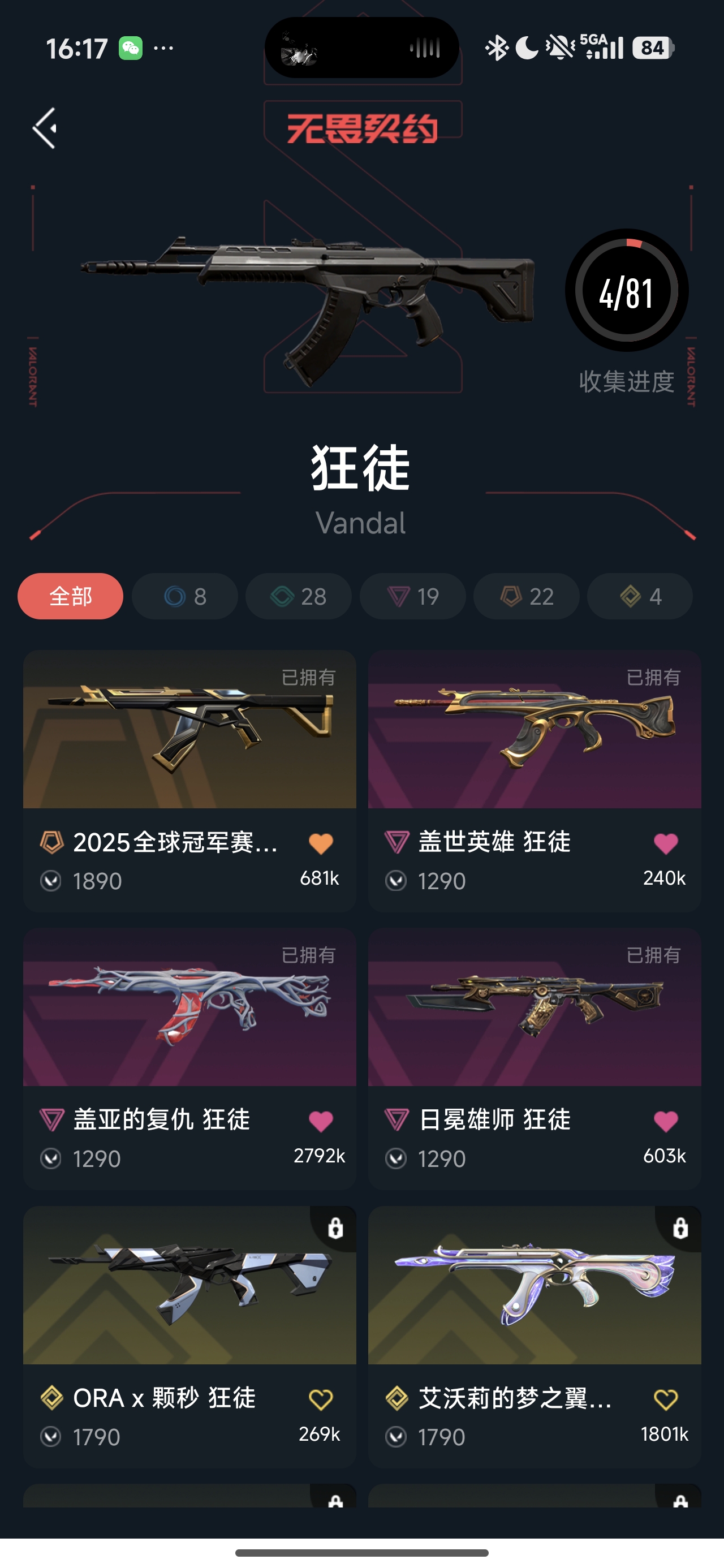 首页 > 租号大厅 > 无畏契约-wegame > wegame/wegame > 离子正义,26vct篆刀,猴子狂徒,盖亚狂徒,狮子狂徒,25冠狂徒,颗秒正义,颗秒幻影,25冠蝴蝶刀