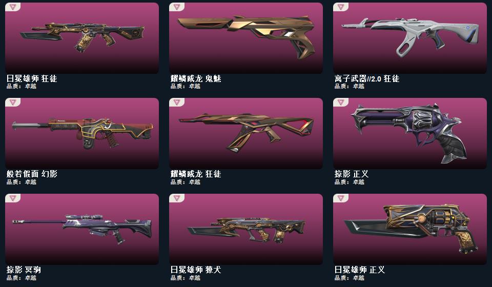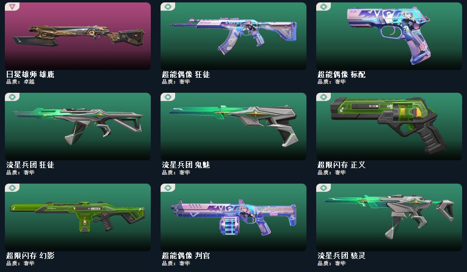 wegame无畏契约★武器皮肤数量:111,鬼丸国纲,超限闪存 匕首,影刃,夜刃诡镰,超能偶像 应援棒,RGX 11z Pro//3.0 爪刀,埃芒迪尔大剑,流星兵团 短剑,珍珠棘贝 短剑,天御刀,侦察力量 蝴蝶刀,钢轨卫士 战锤,威龙之刃,诛心猎手 正义,甜心猎手 蜂刺,诡秘蛇影 判官,甜心猎手 戍卫,诛心猎手 冥驹,诛心猎手 奥丁