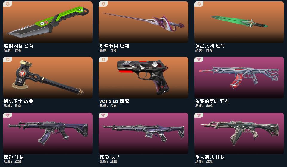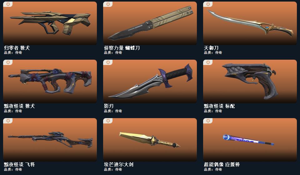 wegame无畏契约★鬼丸国纲,超限闪存 匕首,影刃,夜刃诡镰,超能偶像 应援棒,RGX 11z Pro//3.0 爪刀,埃芒迪尔大剑,流