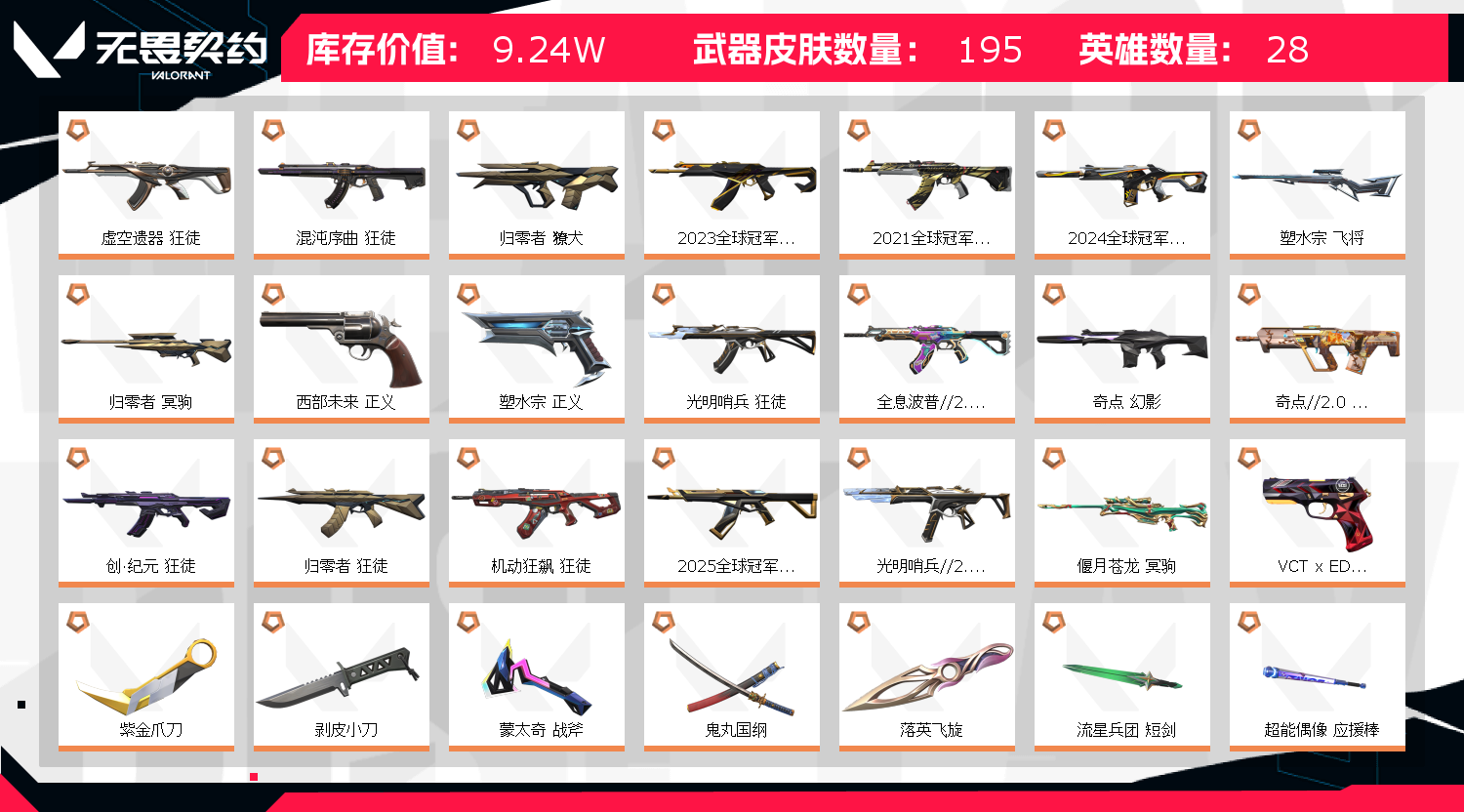 首页 > 租号大厅 > 无畏契约-wegame > wegame/wegame > vct篆刀 电玩套 波若假面2.0全套 奇点2.0全套 24冠军套 21冠军23冠军24冠军25冠军