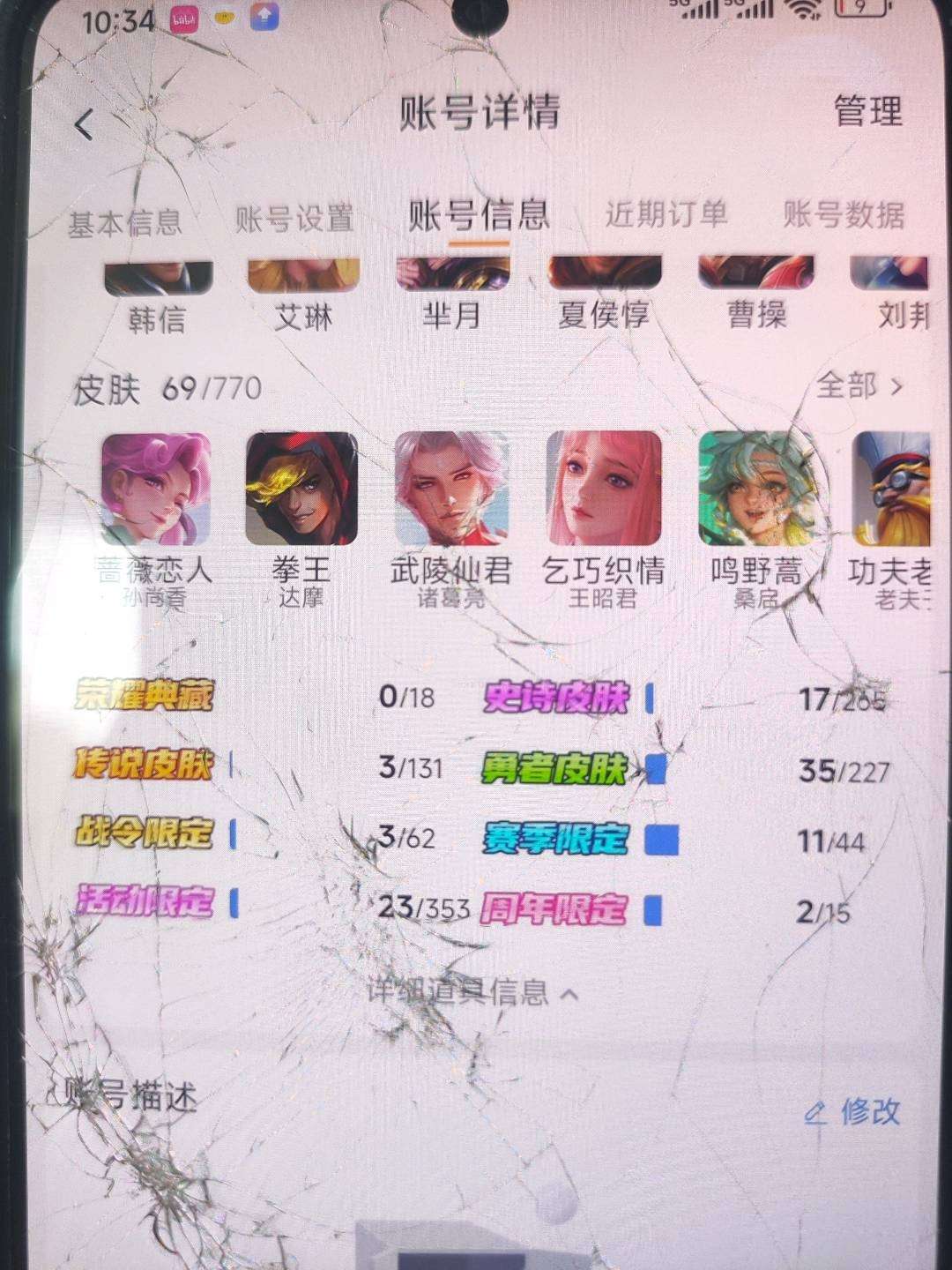 扫码登录🌸小黄鸭个性小兵🌸V10🌸500皮肤🌸韩信典藏🌸9颗荣耀水晶🌸安卓Q153区🌸已禁言,禁止巅峰赛