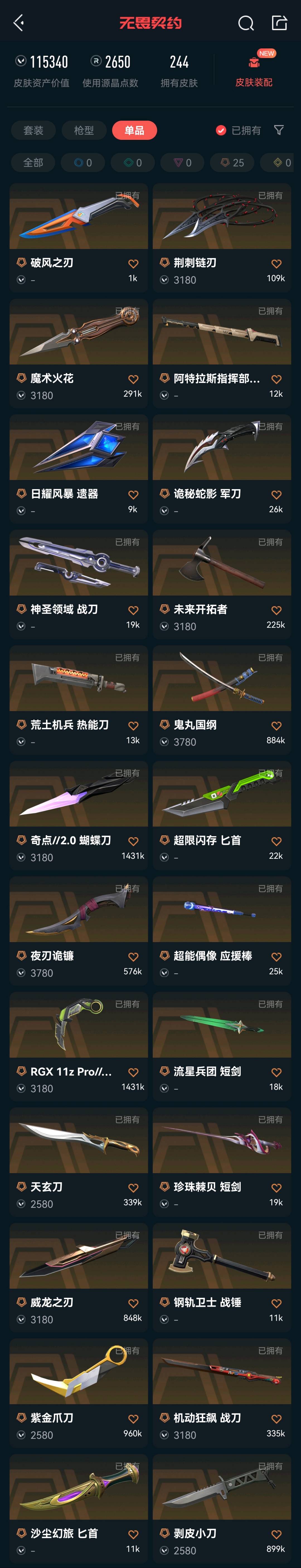 • 皮肤资产价值: 115340