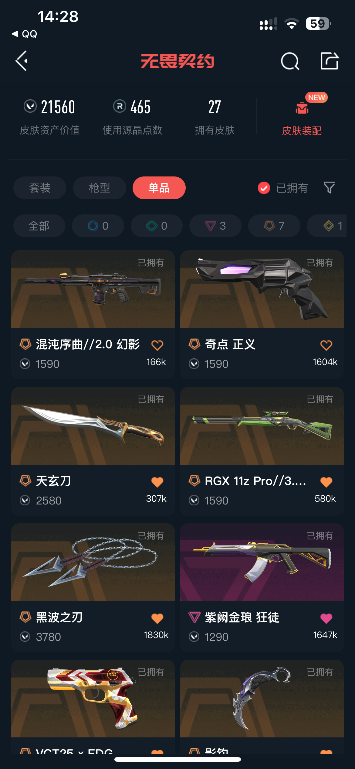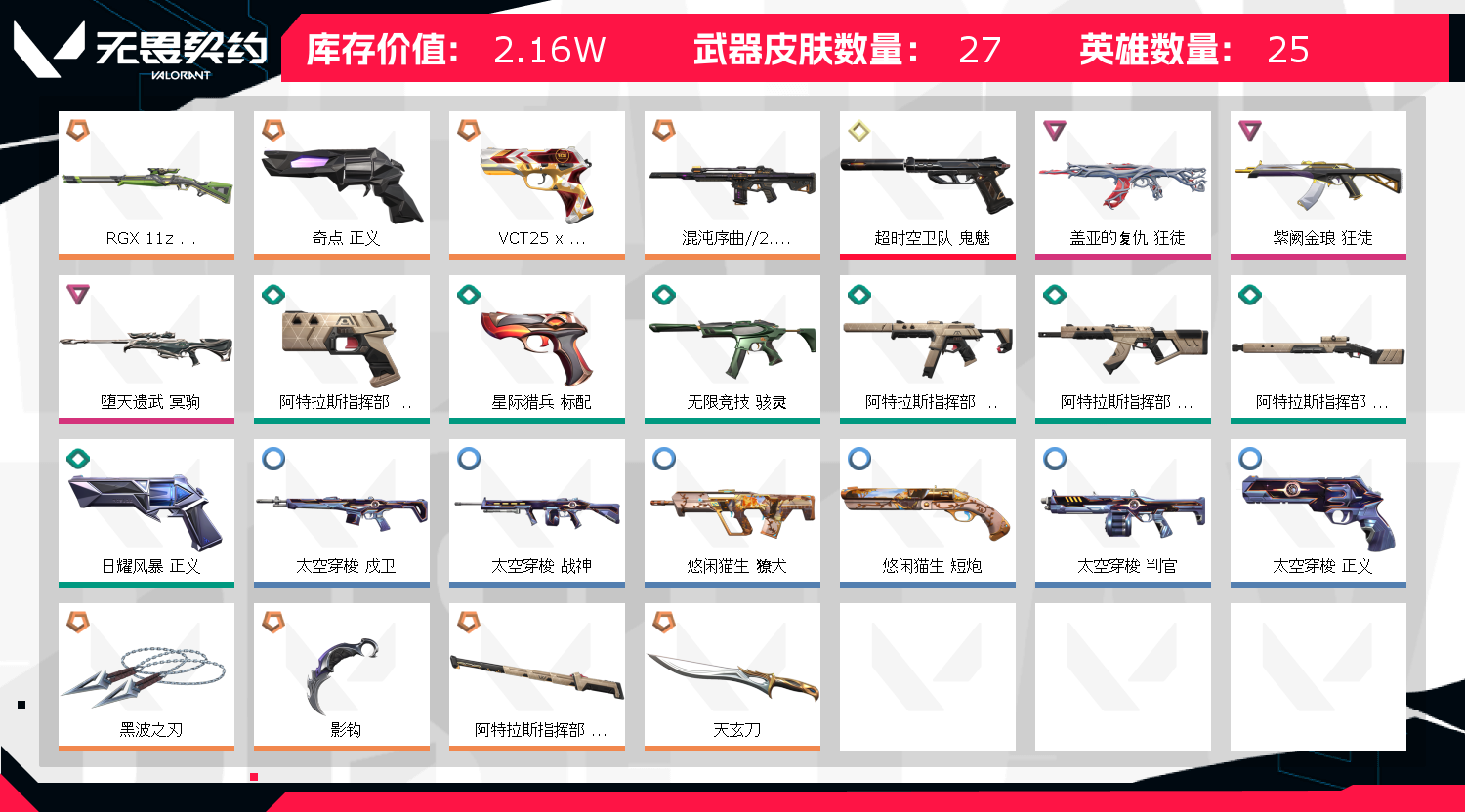 • 皮肤资产价值: 21560