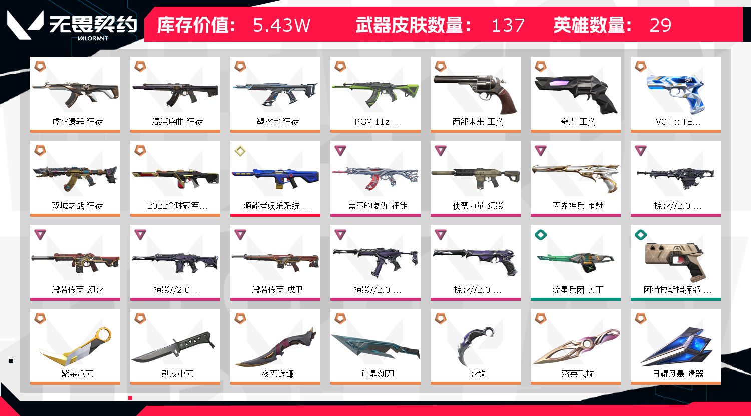 • 武器皮肤数量: 137
