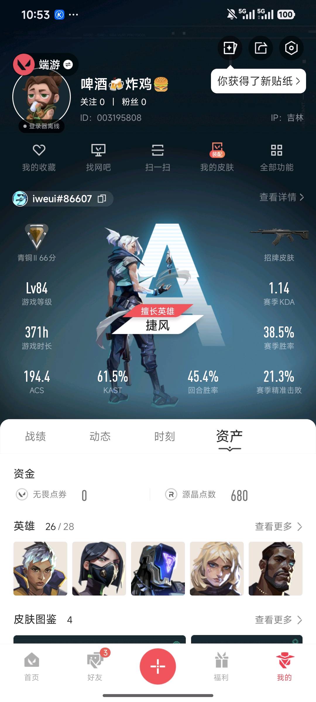 无皮肤可排位炸鱼小号。;